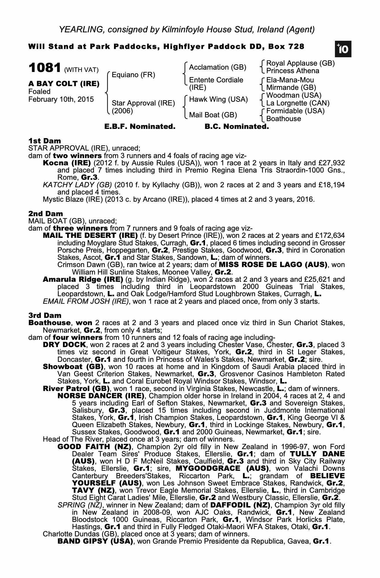 Consignor: Kilminfoyle House Stud, Ireland (Agent)
