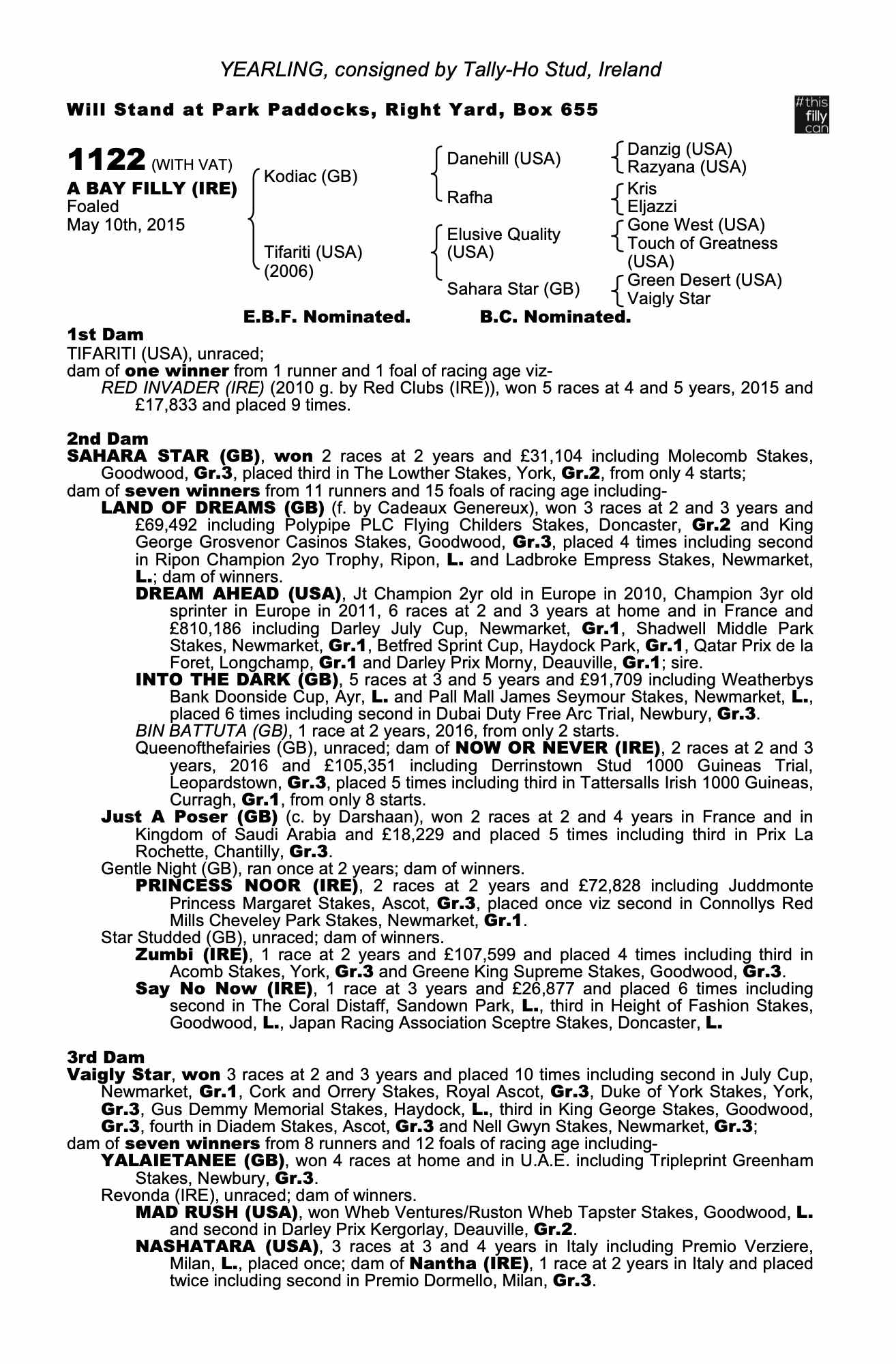 Consignor: Tally-Ho Stud, Ireland