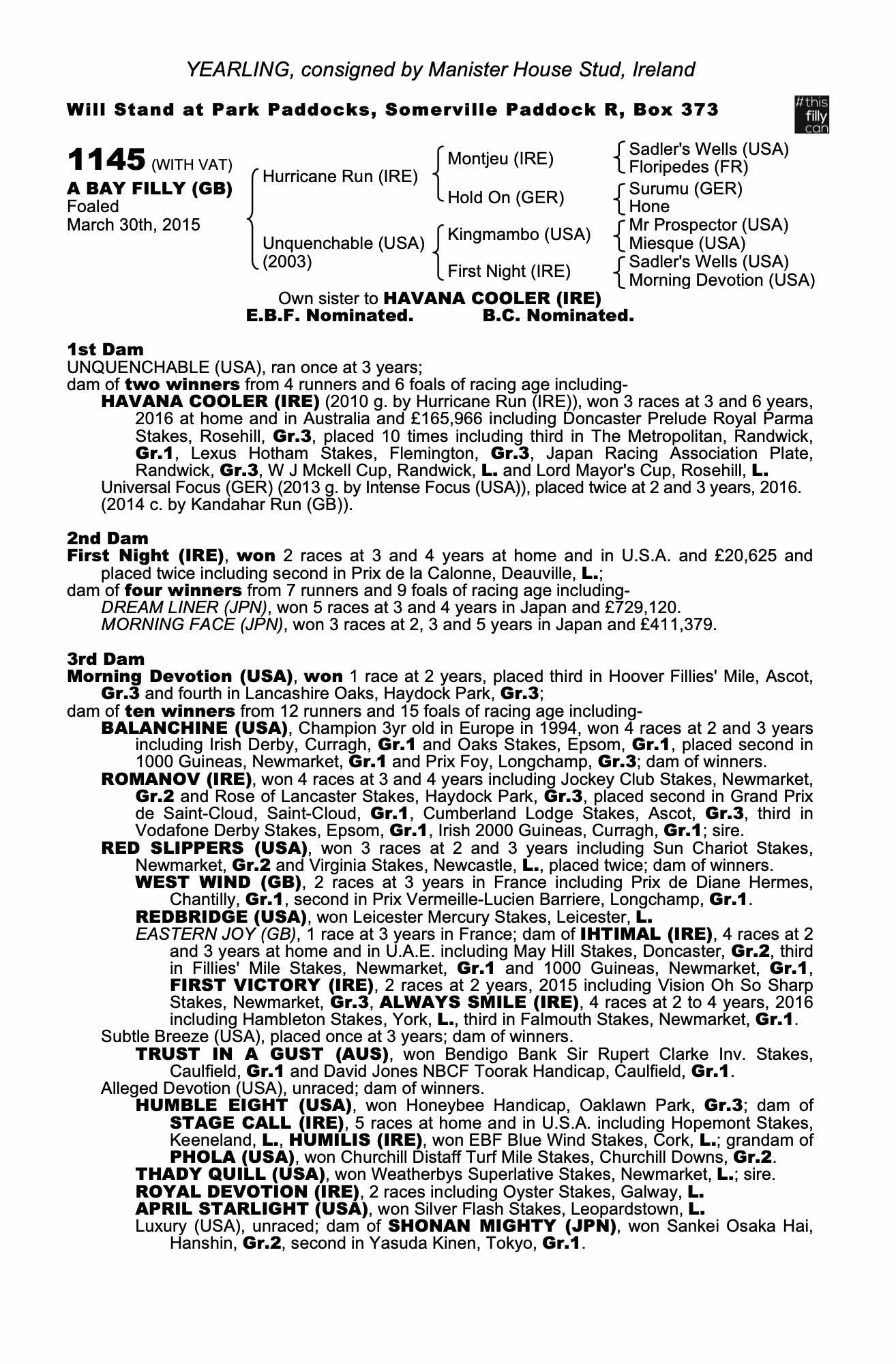 Consignor: Manister House Stud, Ireland