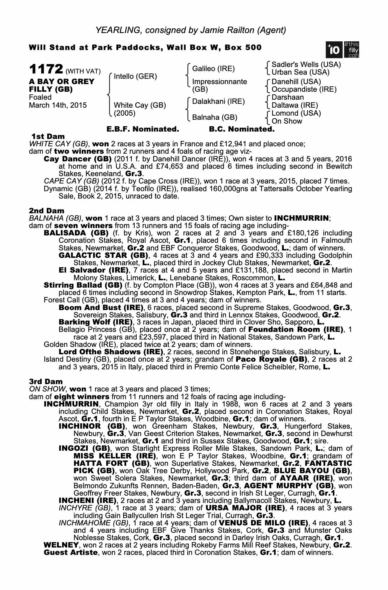 December Mare Sale 2015 lot 2277 Cape Cay (GB) (F. by Cape Cross (IRE)), Jamie Railton (Agent)=>TG Roddick 85,000 gns