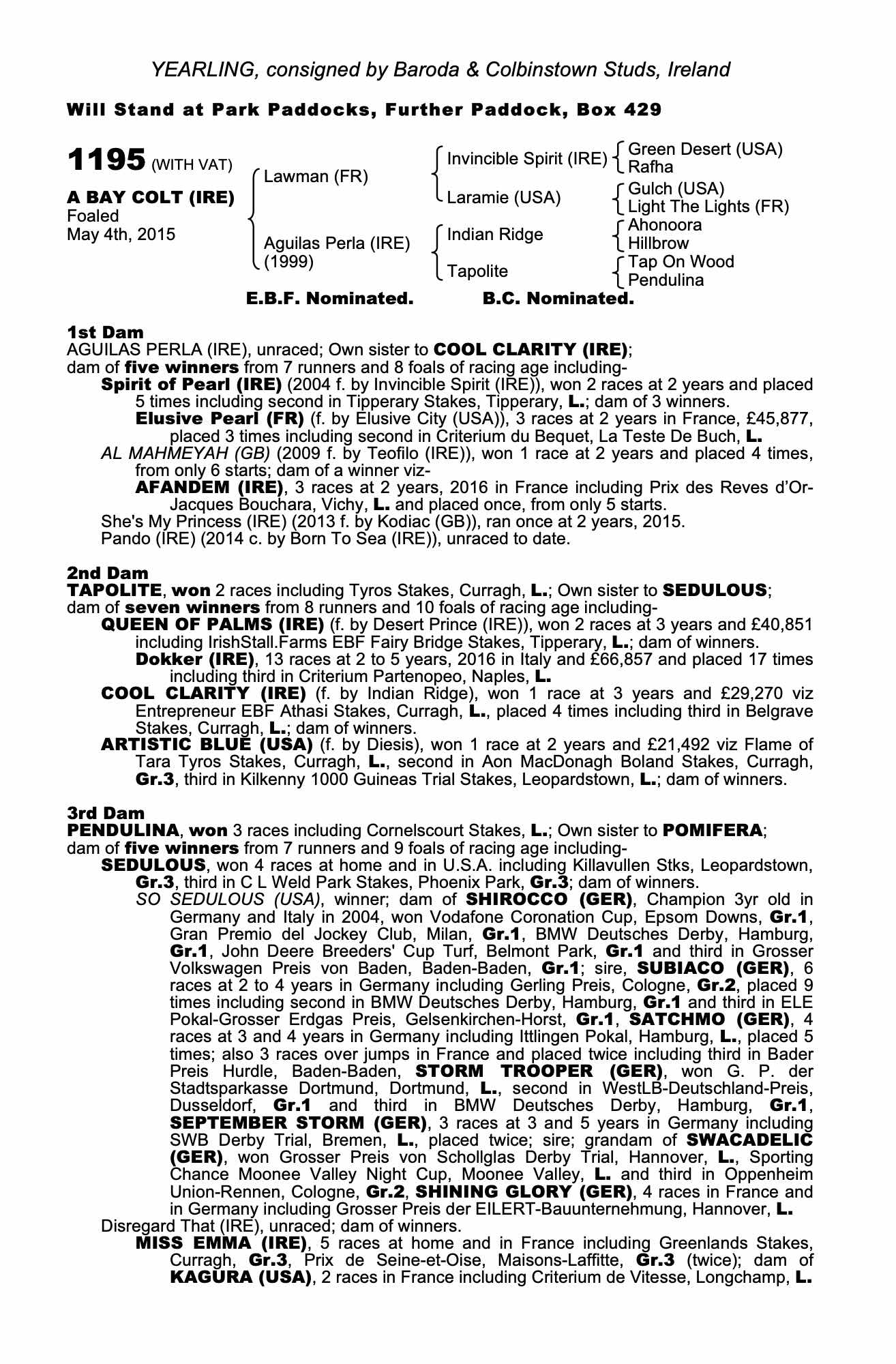 Consignor: Baroda & Colbinstown Studs, Ireland