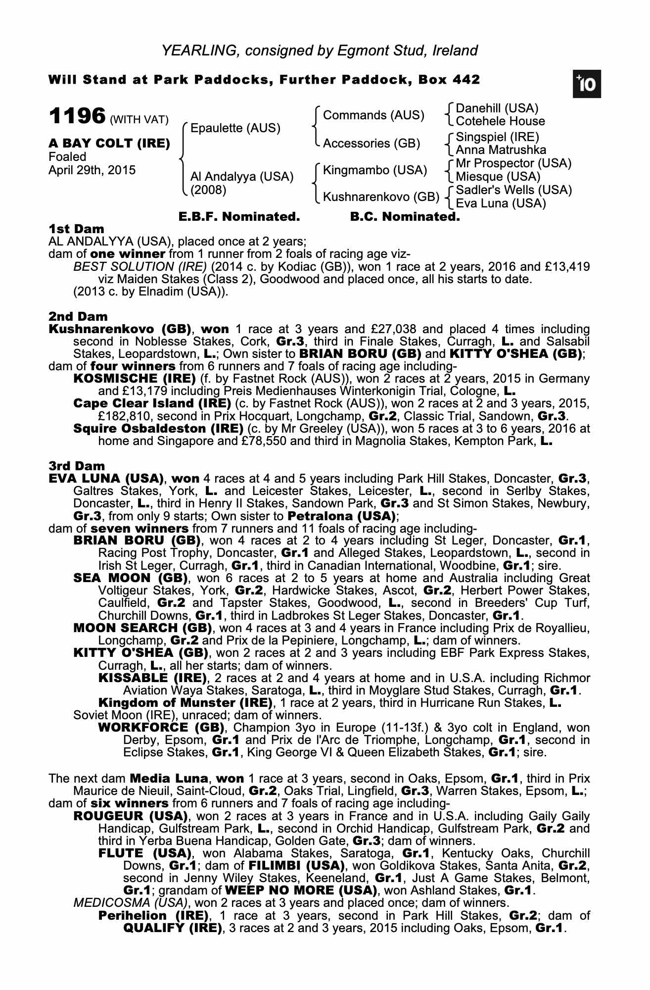 December Foal Sale 2015 lot 841, Meadowlands Stud (Co. Down)=>Paula Flannery 16,000 gns