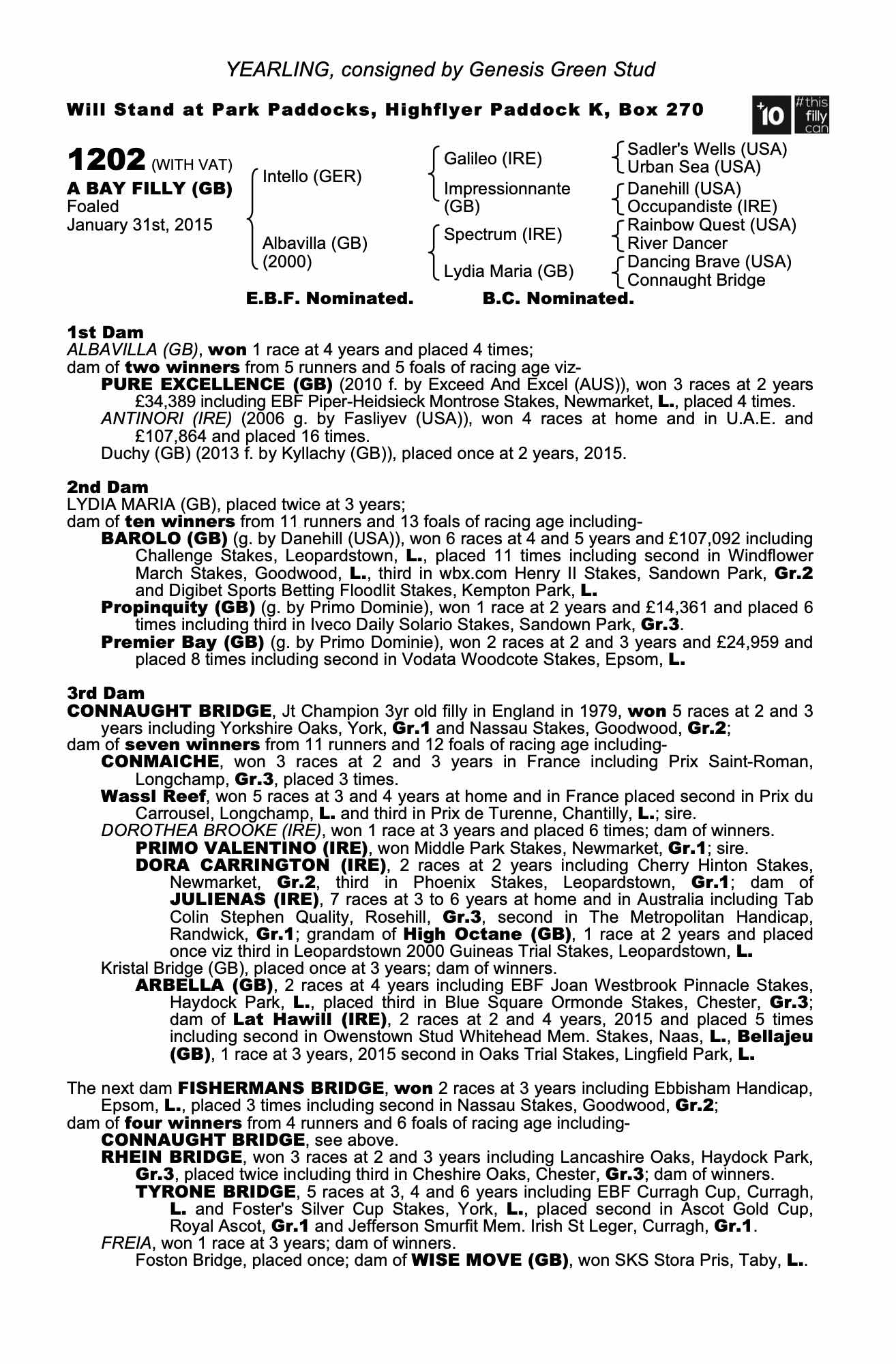 October Yearling Sale, Book 2 2014 lot 726 F. by Kyllachy (GB) 2013, Genesis Green Stud=>J Warren Bloodstock 105,000 gns