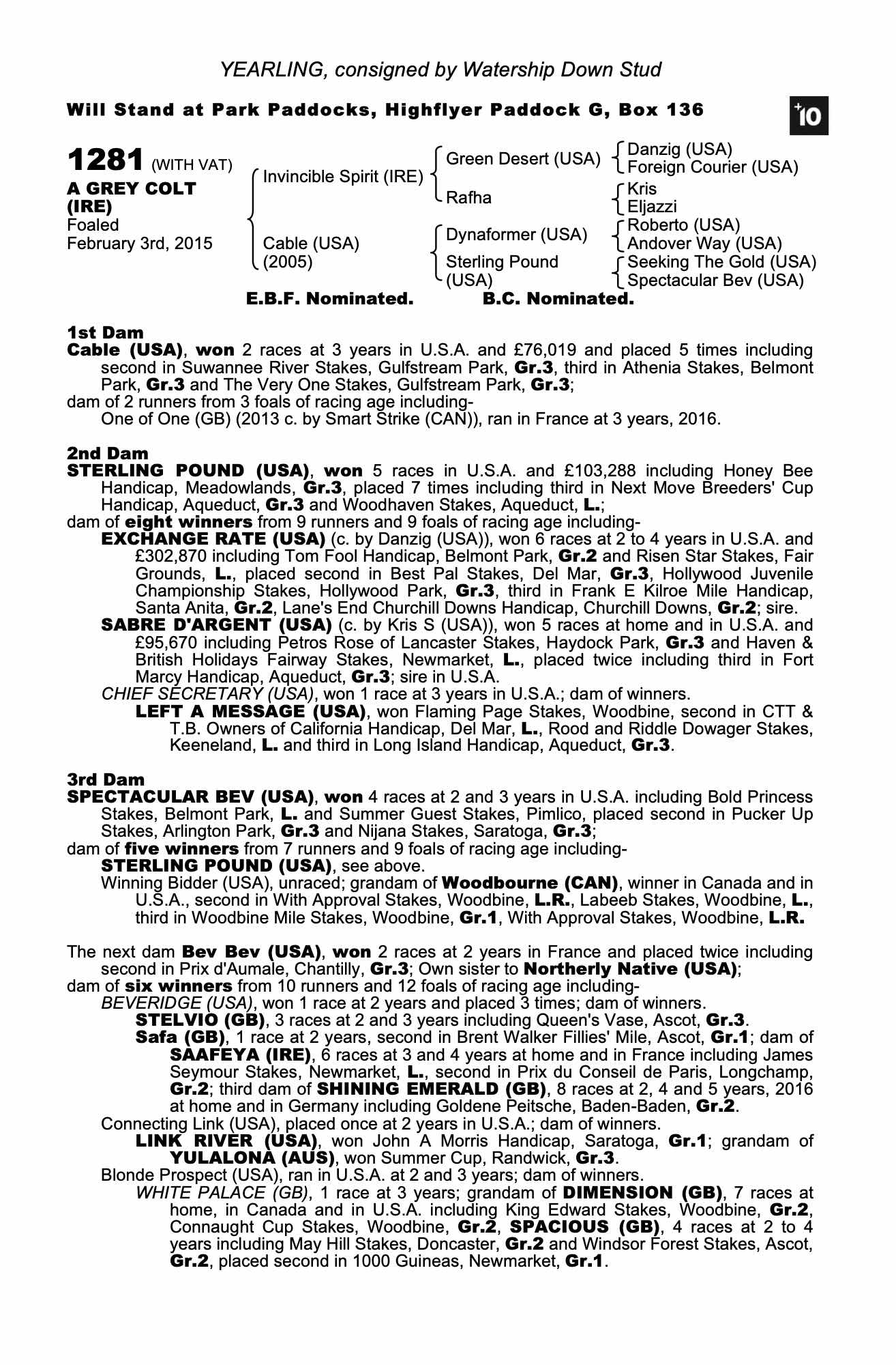 Invincible Spirit (IRE) / Cable (USA) Gr.C. (IRE)
