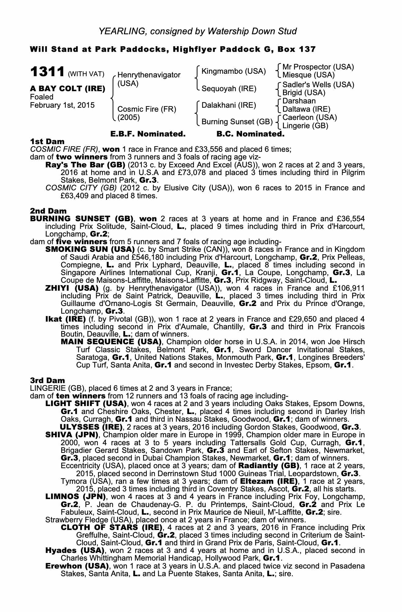 Consignor: Watership Down Stud