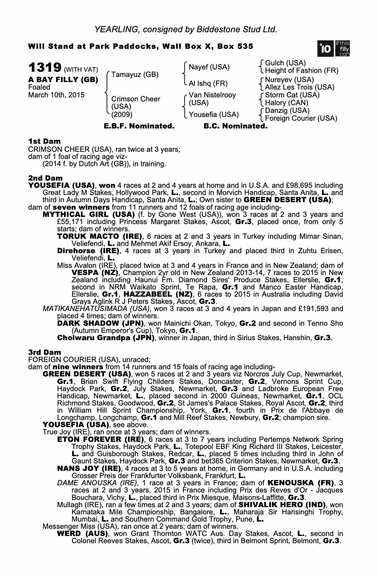 February Sale 2017 lot 29 Dutch Cat (GB) (F. by Dutch Art (GB)), Bumble Mitchell=>Mickley Stud 5,000 gns