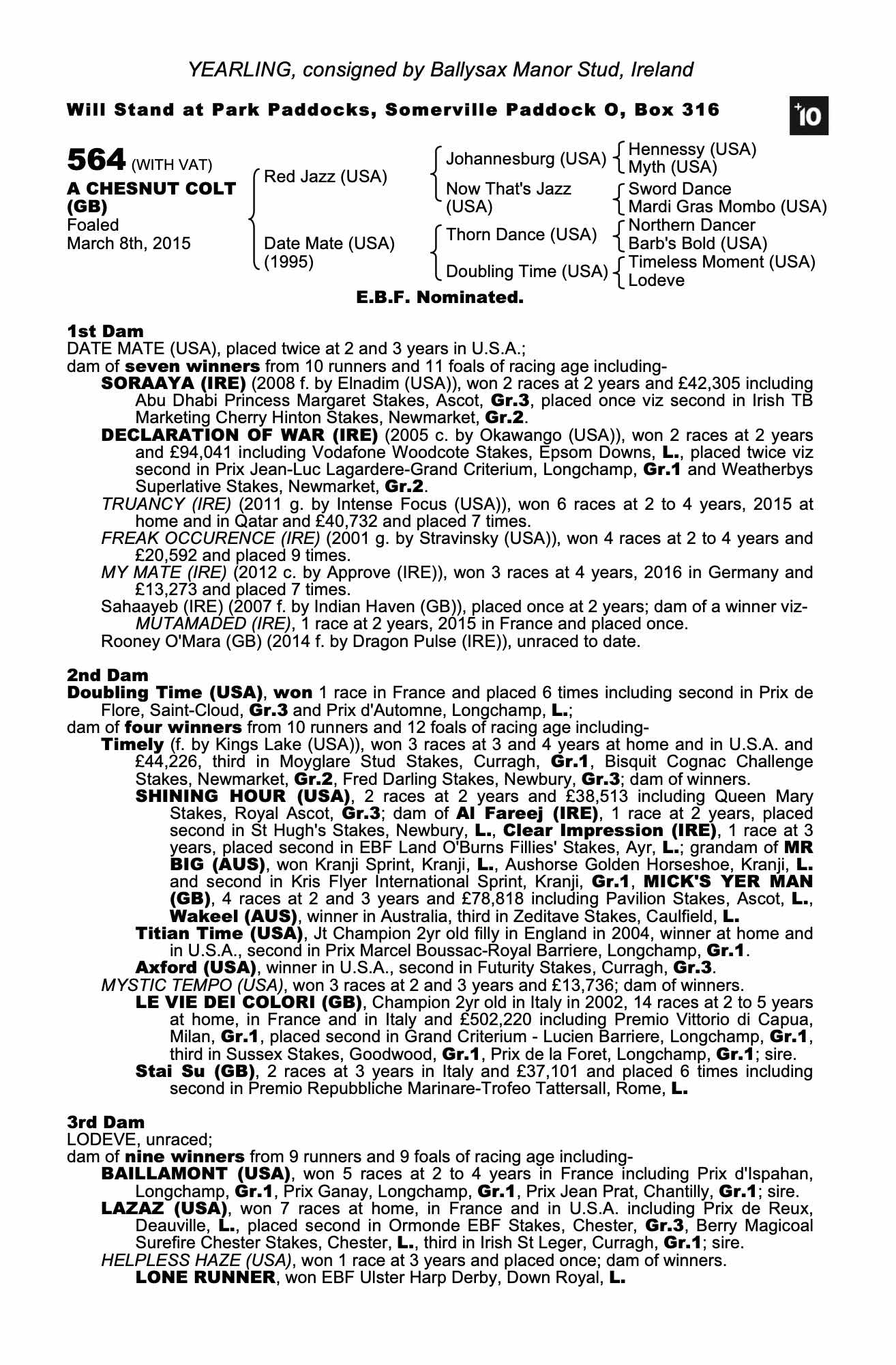 October Yearling Sale, Book 2 2011 lot 572 F. by Jeremy (USA) 2010, Ballysax Manor Stud, Ireland=>Vendor 29,000 gns
