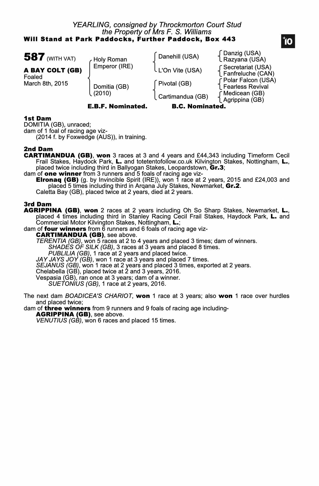 Consignor: Throckmorton Court Stud