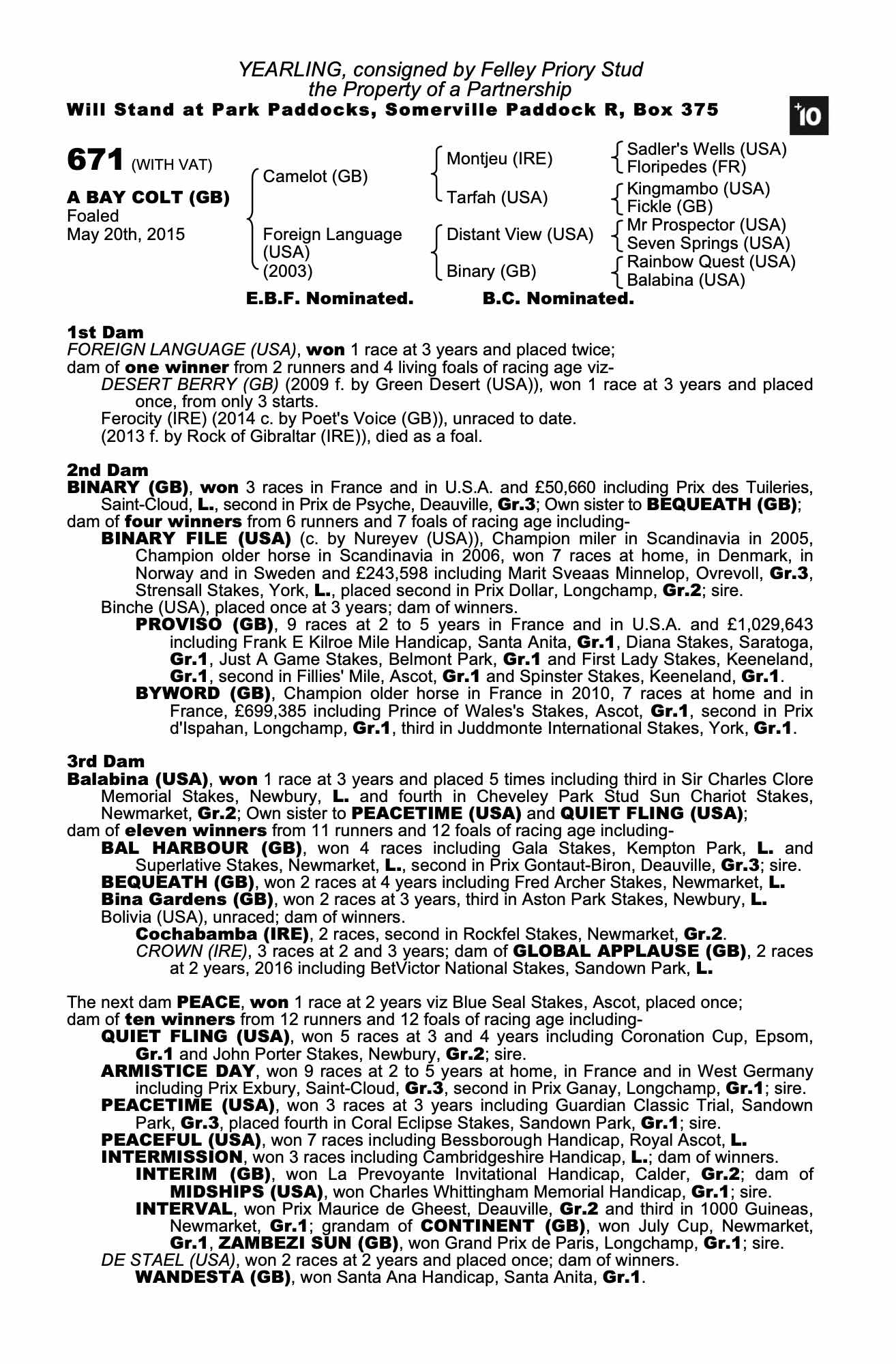Consignor: Felley Priory Stud