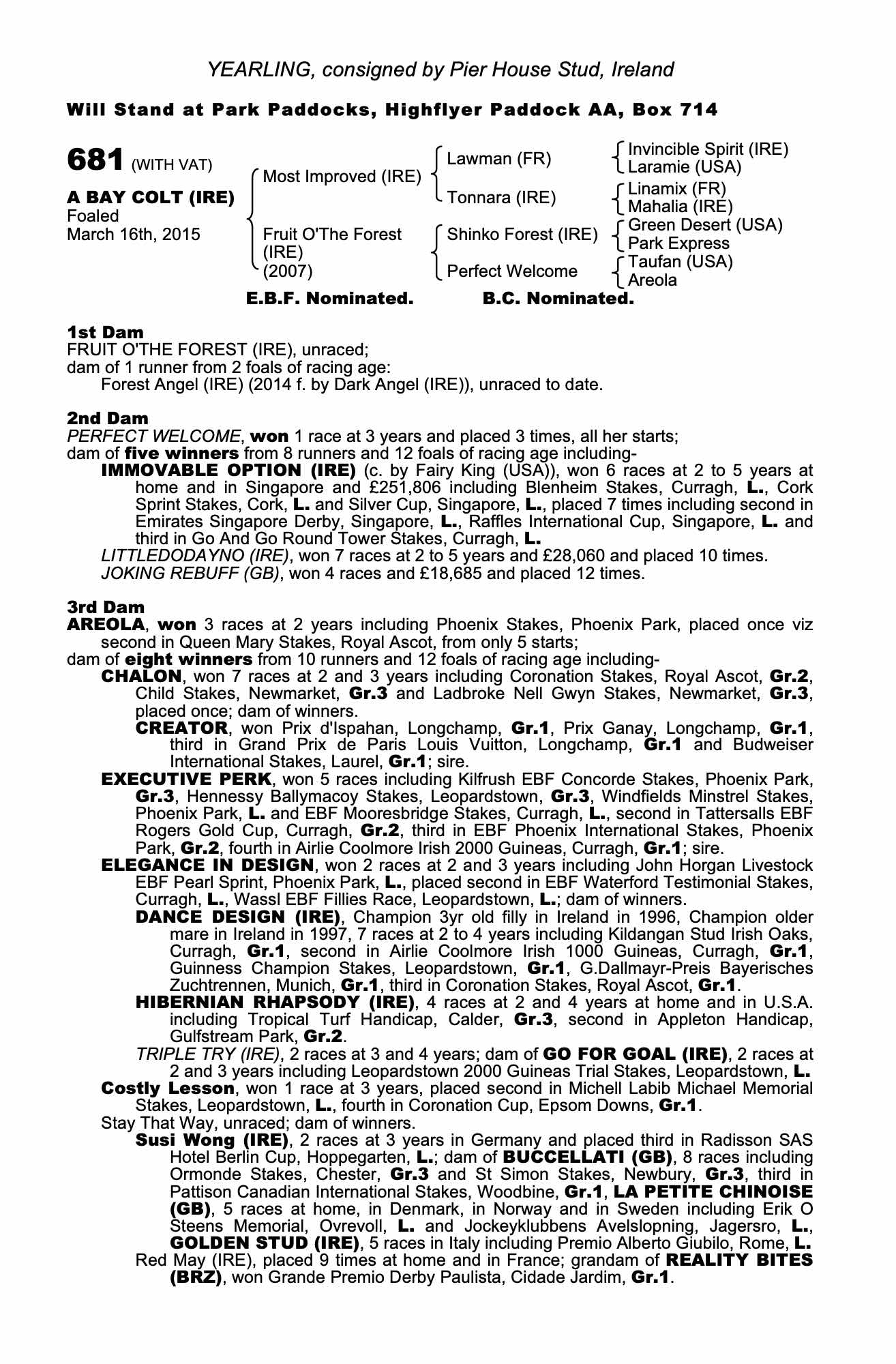 Consignor: Pier House Stud, Ireland