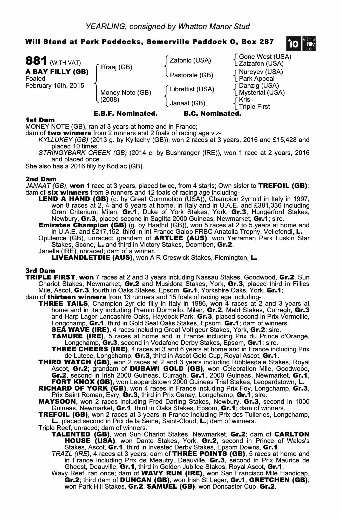 Consignor: Whatton Manor Stud