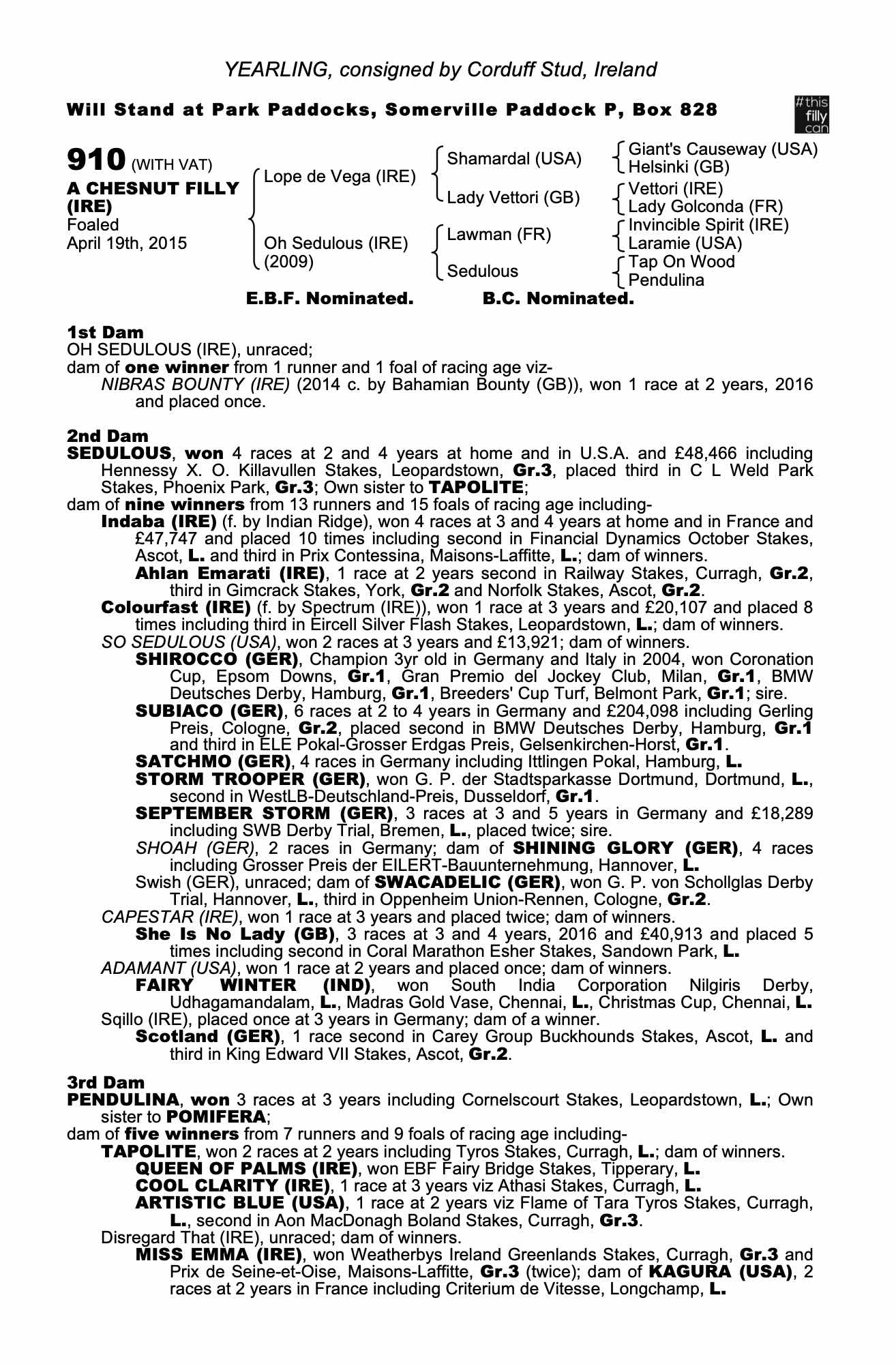 Consignor: Corduff Stud, Ireland