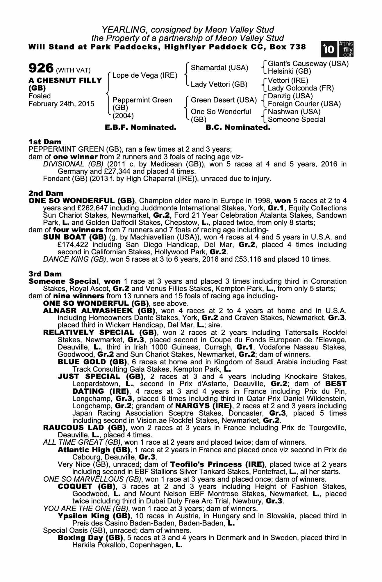 Consignor: Meon Valley Stud