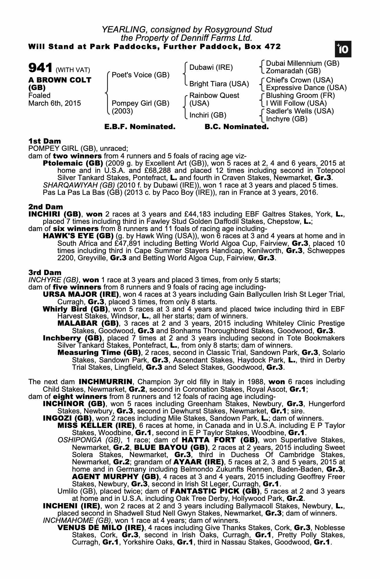 Consignor: Rosyground Stud
