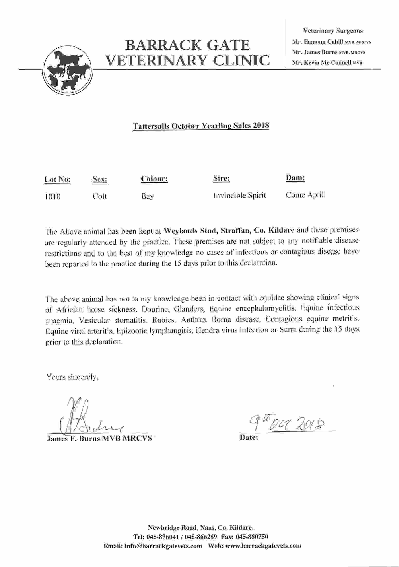 December Foal Sale 2015 lot 946 C. by Arcano (IRE) 2015, Weylands Stud, Ireland=>Peter & Ross Doyle Bloodstock 60,000 gns