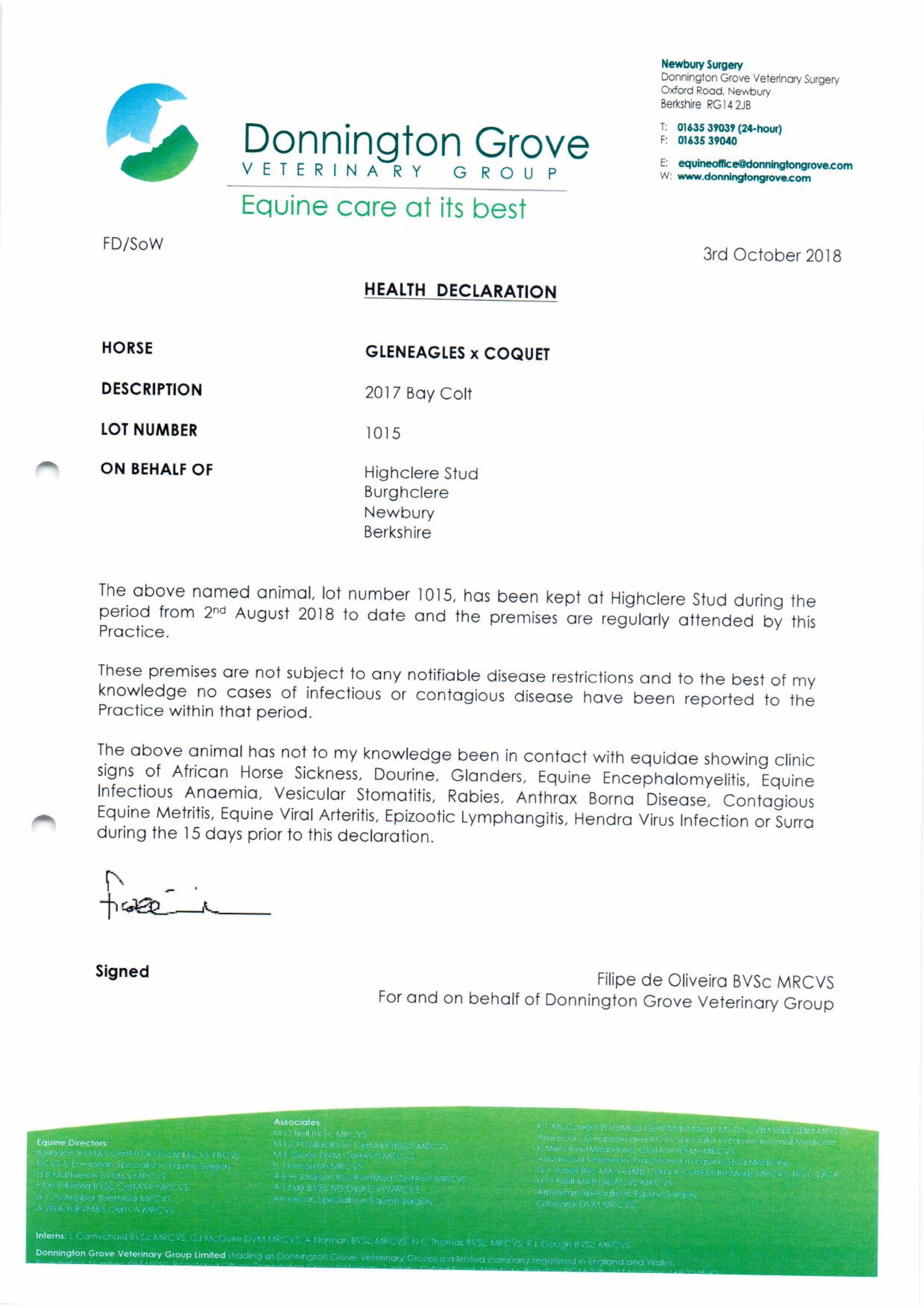 Consignor: Highclere Stud