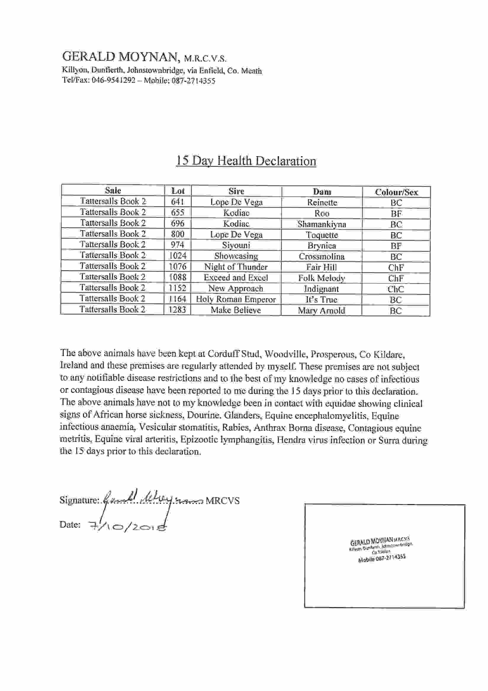 Consignor: Corduff Stud, Ireland