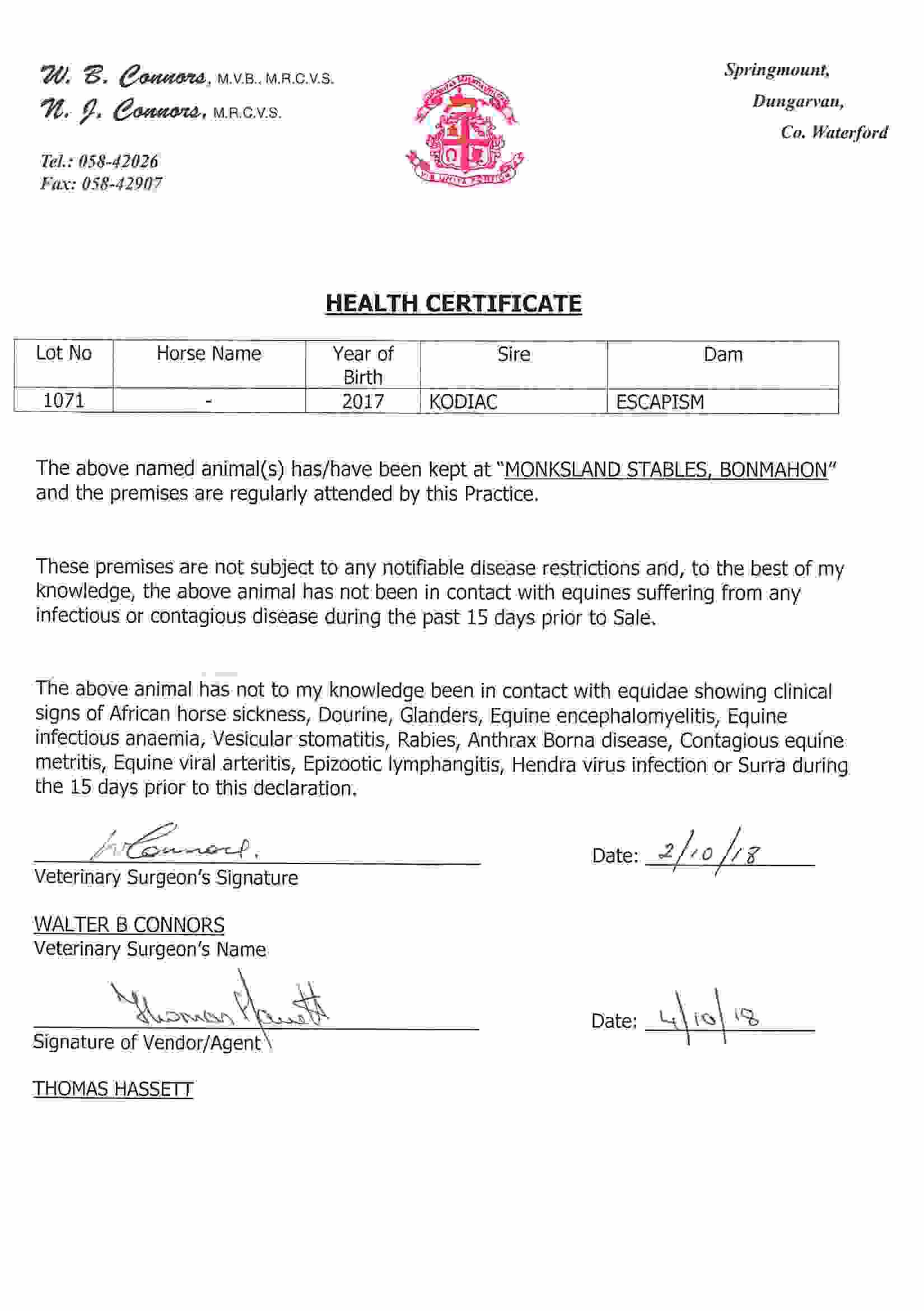 Consignor: Monksland Stables, Ireland