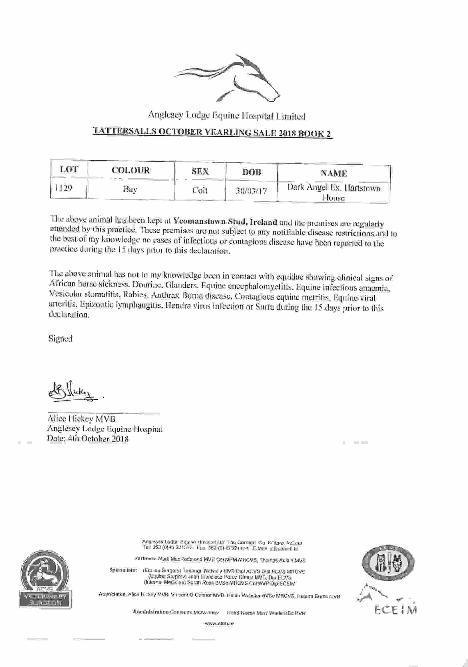 Consignor: Yeomanstown Stud, Ireland
