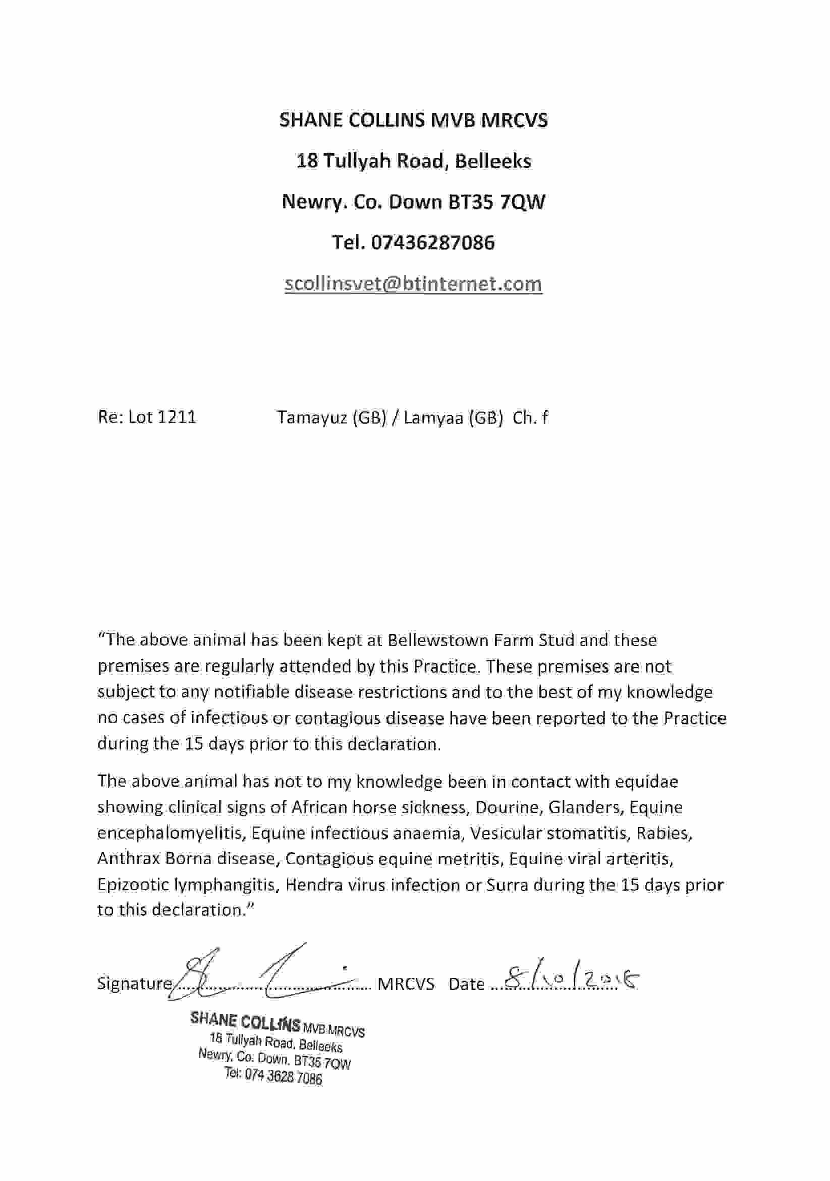 Consignor: Bellewstown Farm Stud