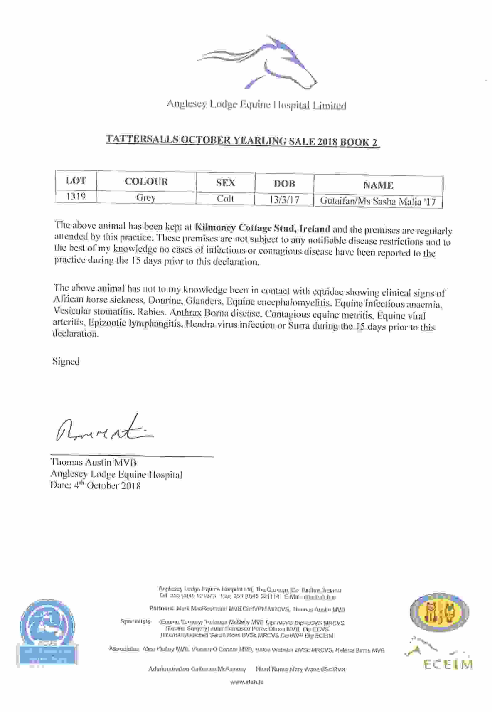 Consignor: Kilmoney Cottage Stud, Ireland