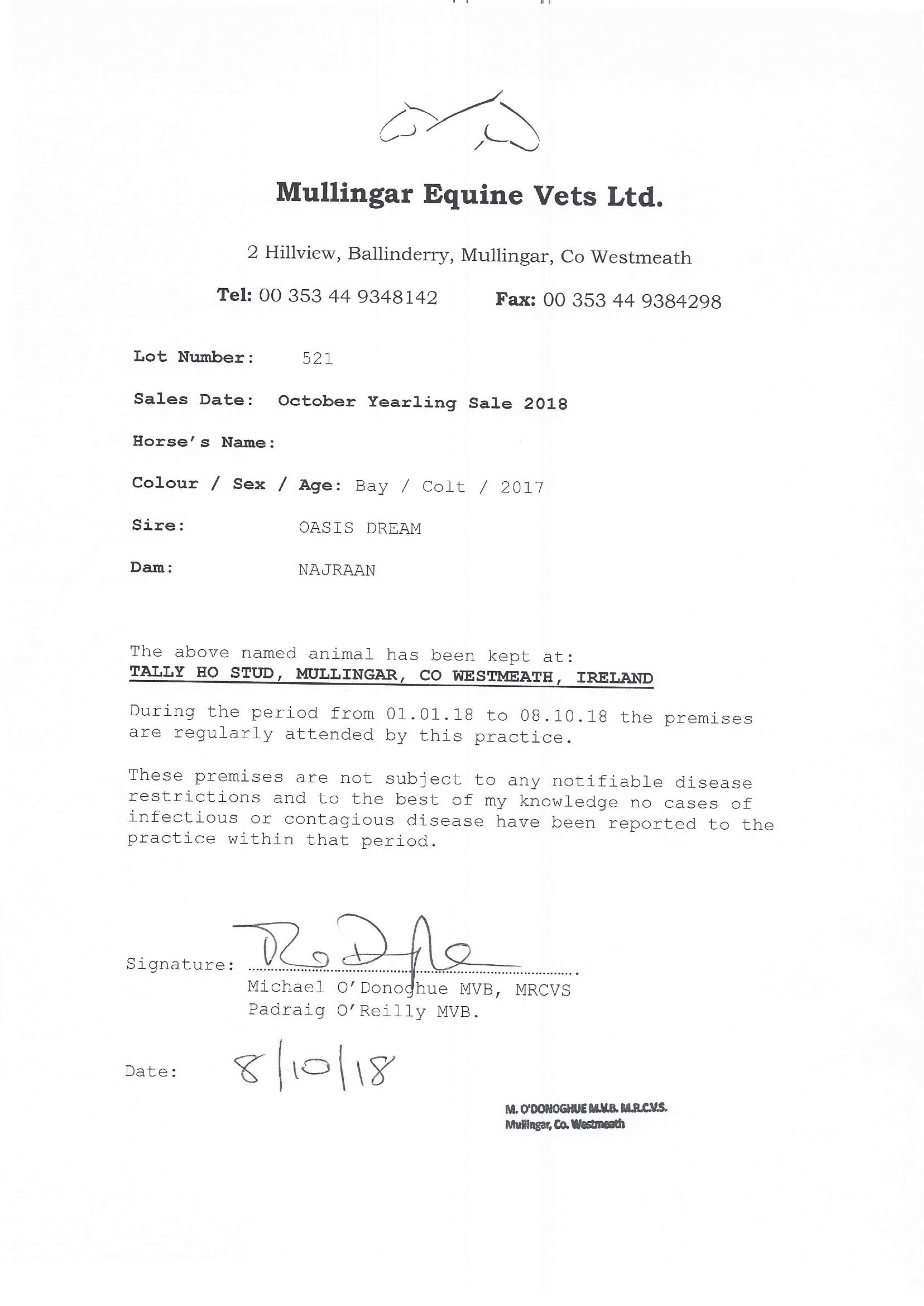 October Yearling Sale, Book 2 2020 lot 1033 F. by Mehmas (IRE) 2019, Tally-Ho Stud, Ireland=>Johnston Racing 42,000 gns
