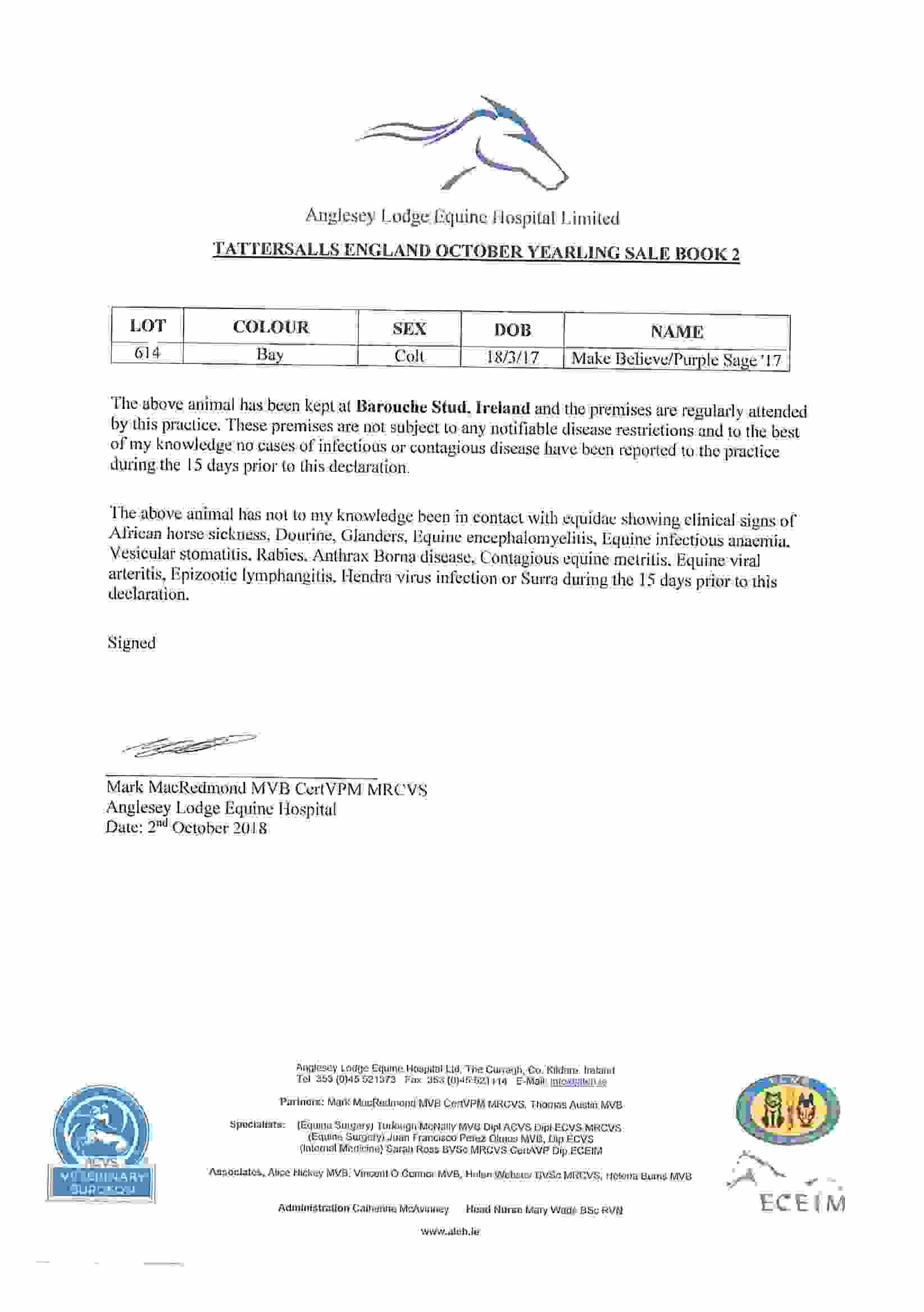 Consignor: Barouche Stud (Ireland) Ltd.