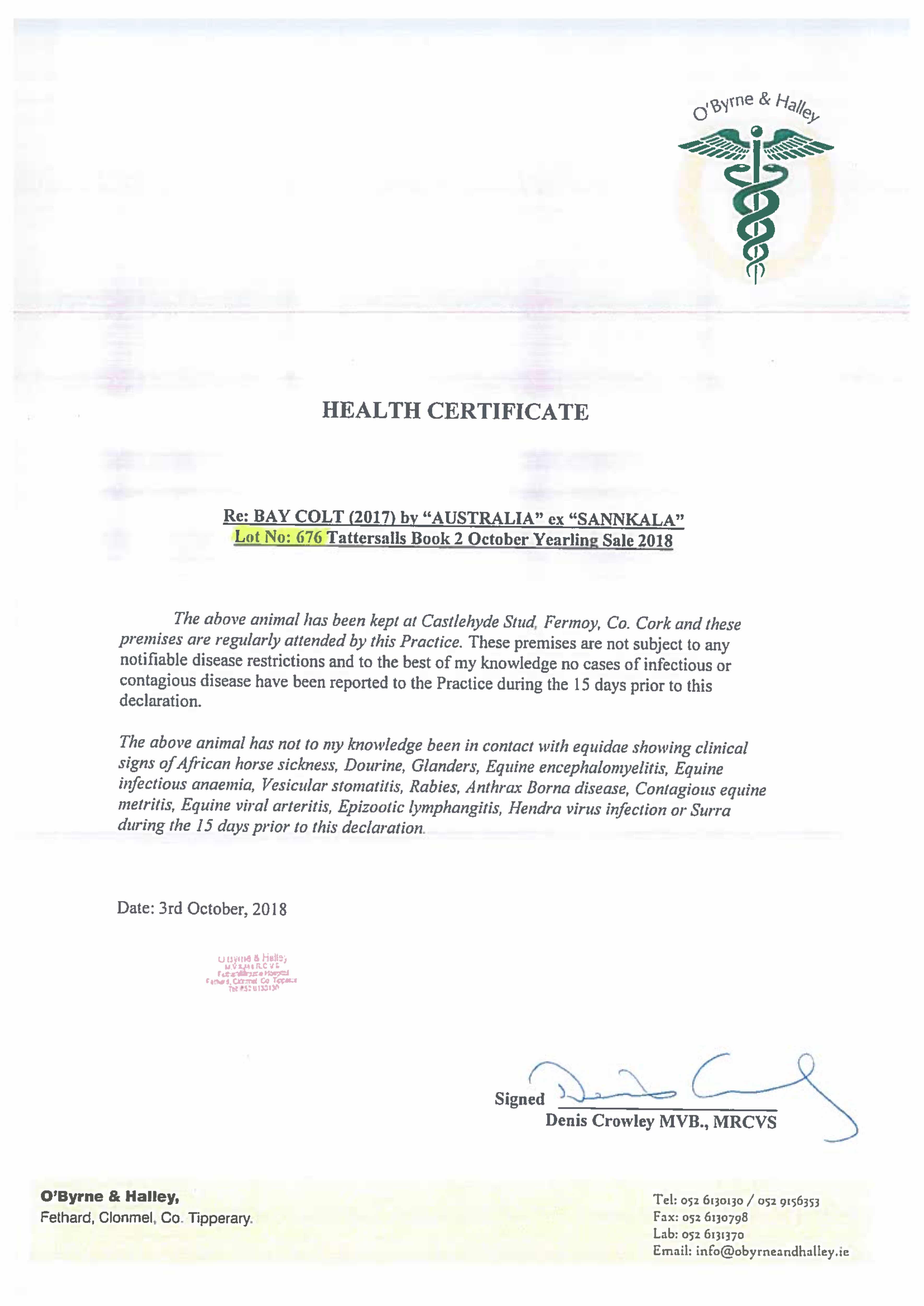 Consignor: Churchtown House Stud, Ireland