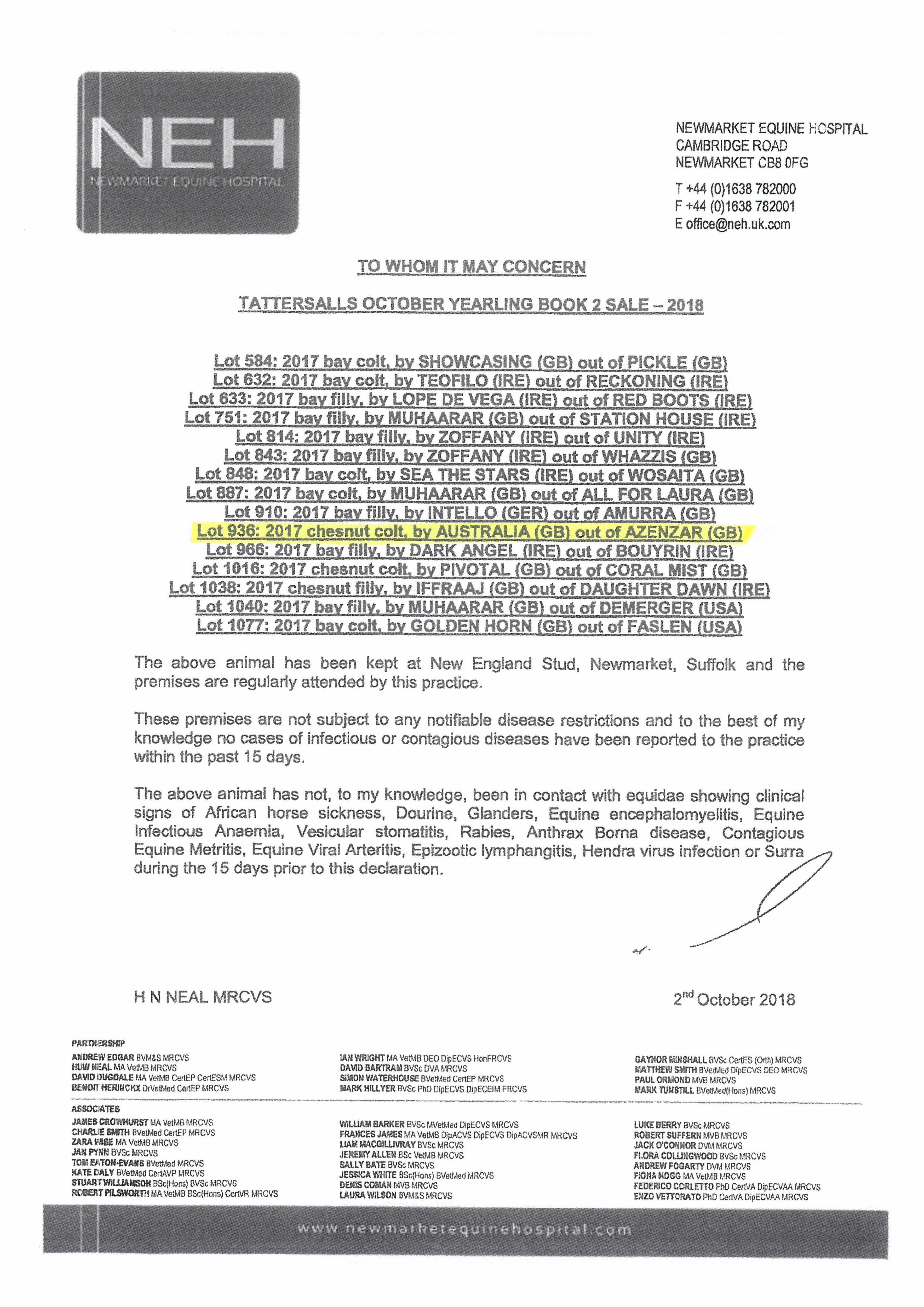 October Yearling Sale, Book 2 2020 lot 612 C. by No Nay Never (USA) 2019, New England Stud=>Vendor 85,000 gns