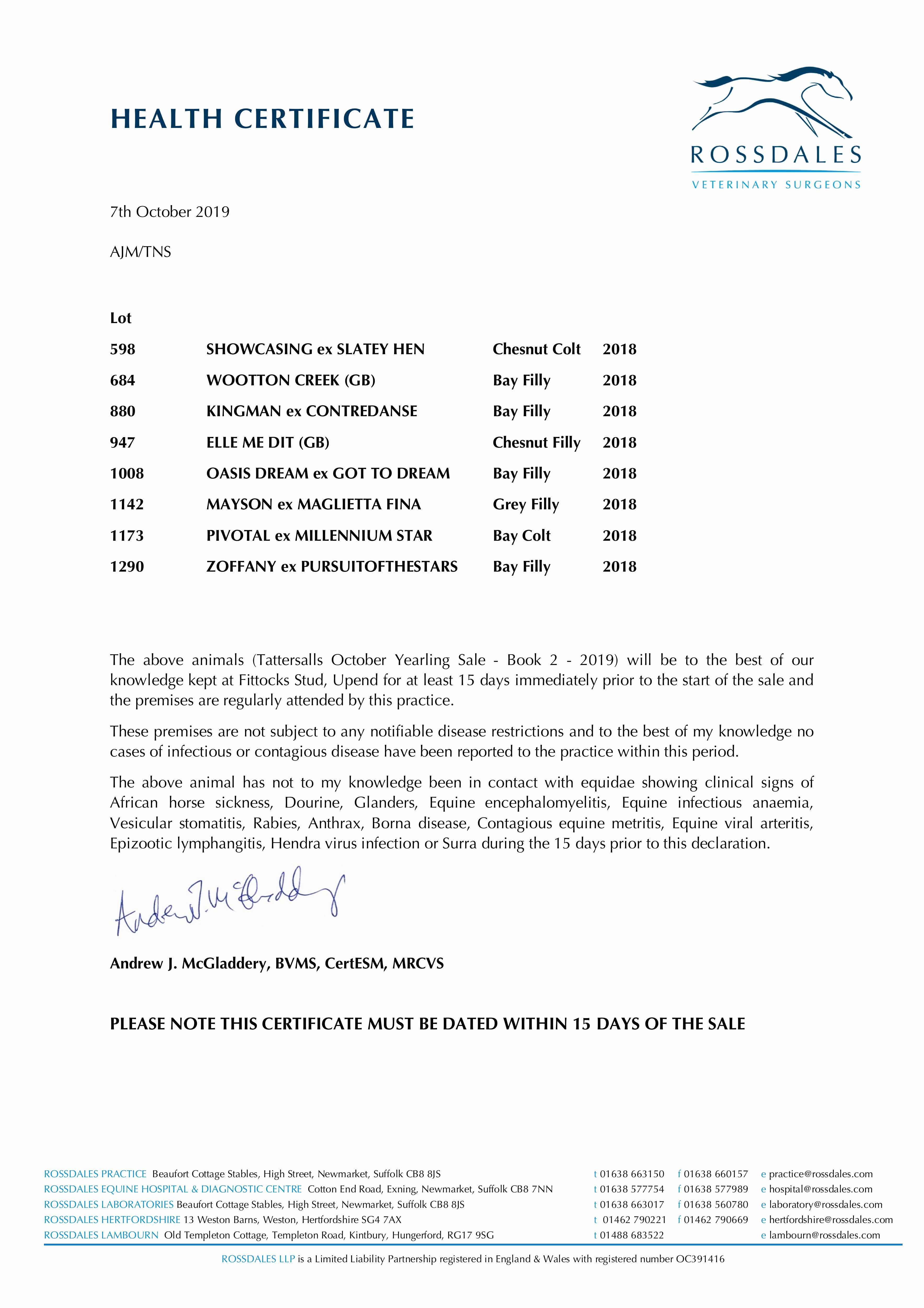 Consignor: Fittocks Stud