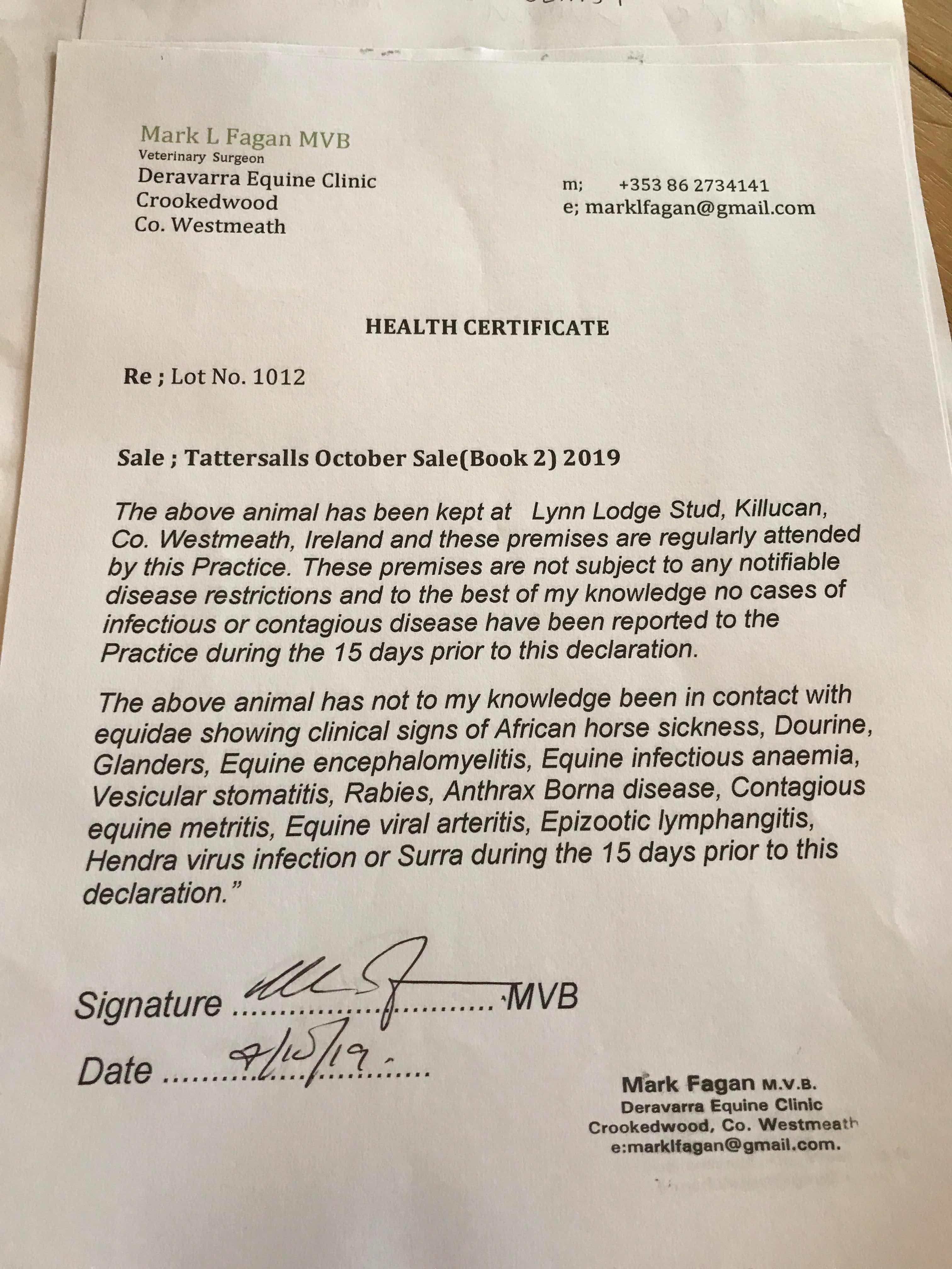 Consignor: Lynn Lodge Stud, Ireland