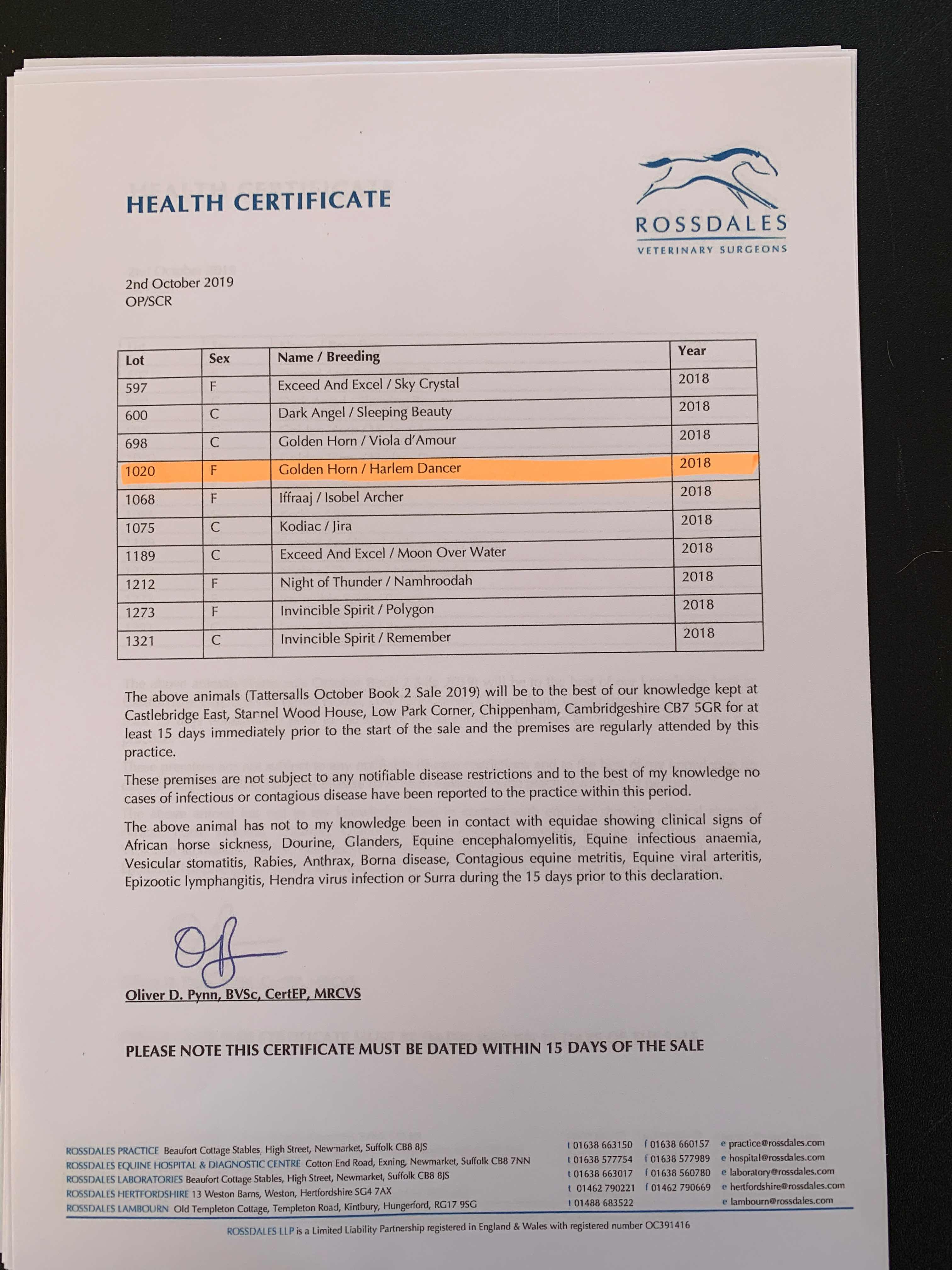 Online Sale - 17th August 2021 lot 17, Ed Dunlop Racing Ltd.=>HW Bloodstock 13,000 gns
