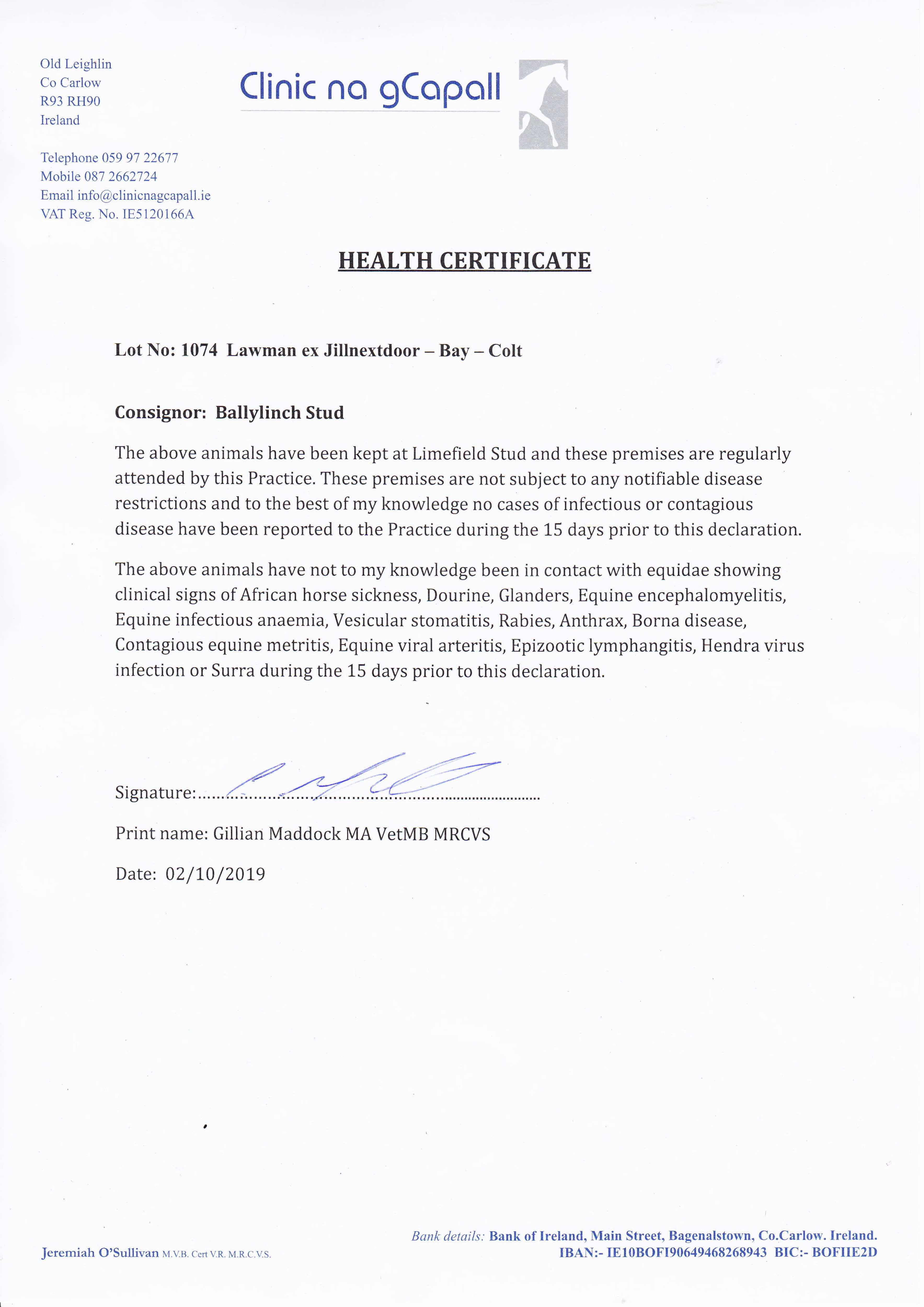 Consignor: Ballylinch Stud, Ireland
