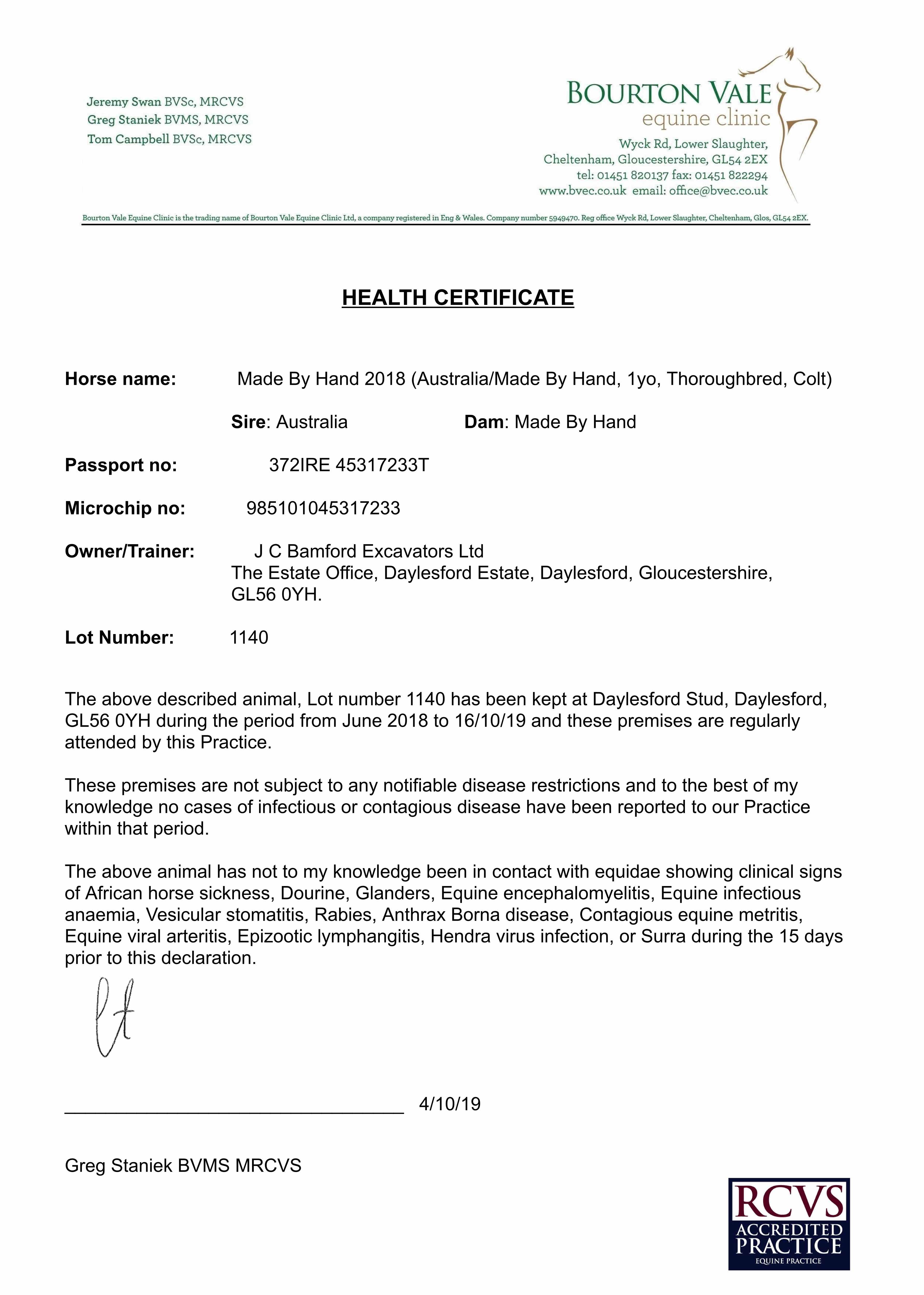 Consignor: Voute Sales Ltd. (Agent)
