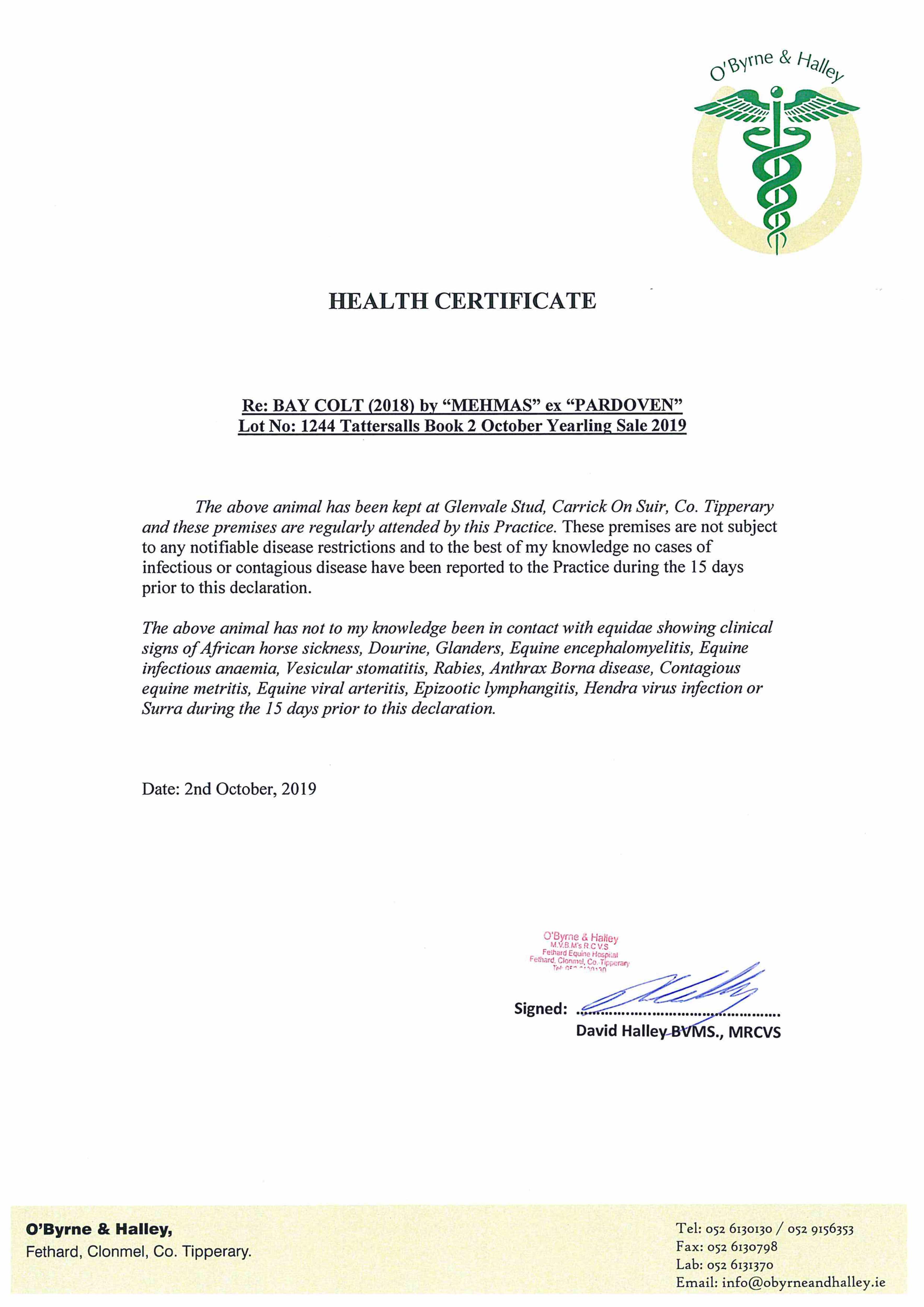 Consignor: Glenvale Stud, Ireland
