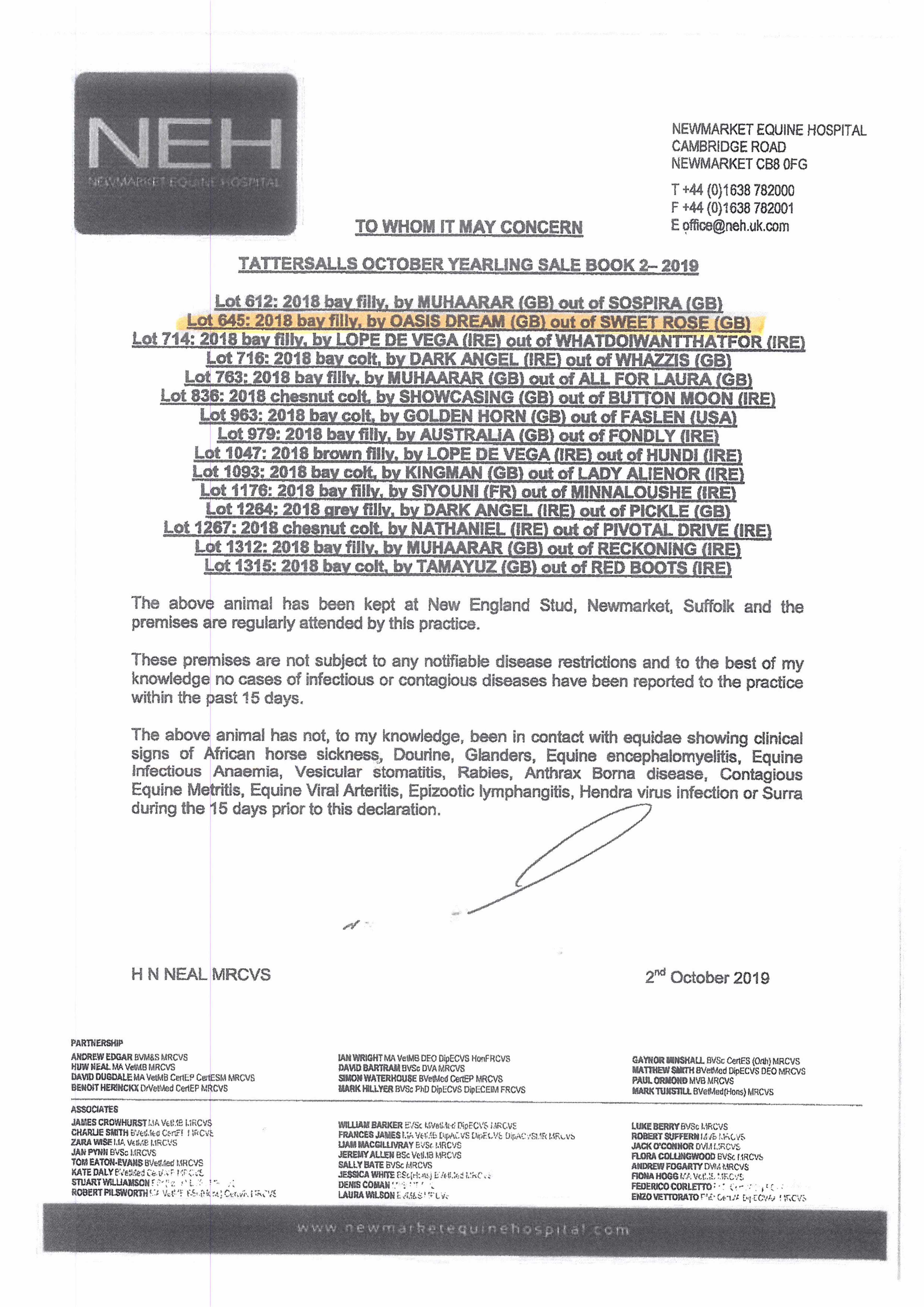 October Yearling Sale, Book 1 2018 lot 146 F. by Kingman (GB) 2017, New England Stud=>Vendor 50,000 gns