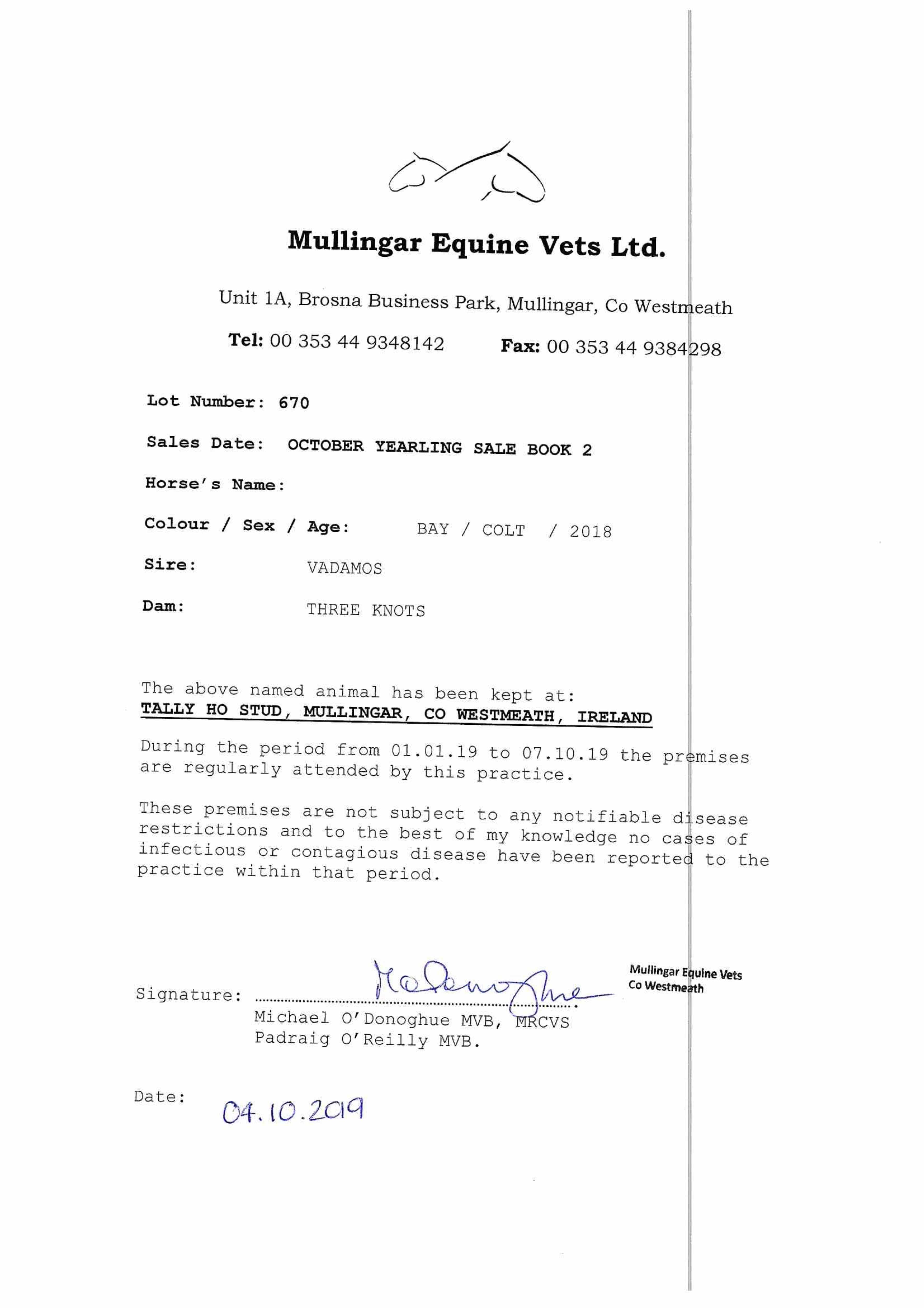 Consignor: Tally-Ho Stud, Ireland
