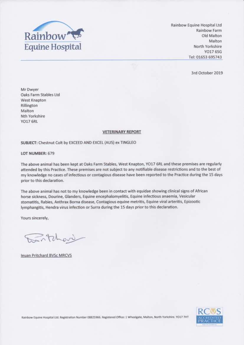 December Foal Sale 2018 lot 594, Catridge Farm Stud=>Kilbride Equine 40,000 gns