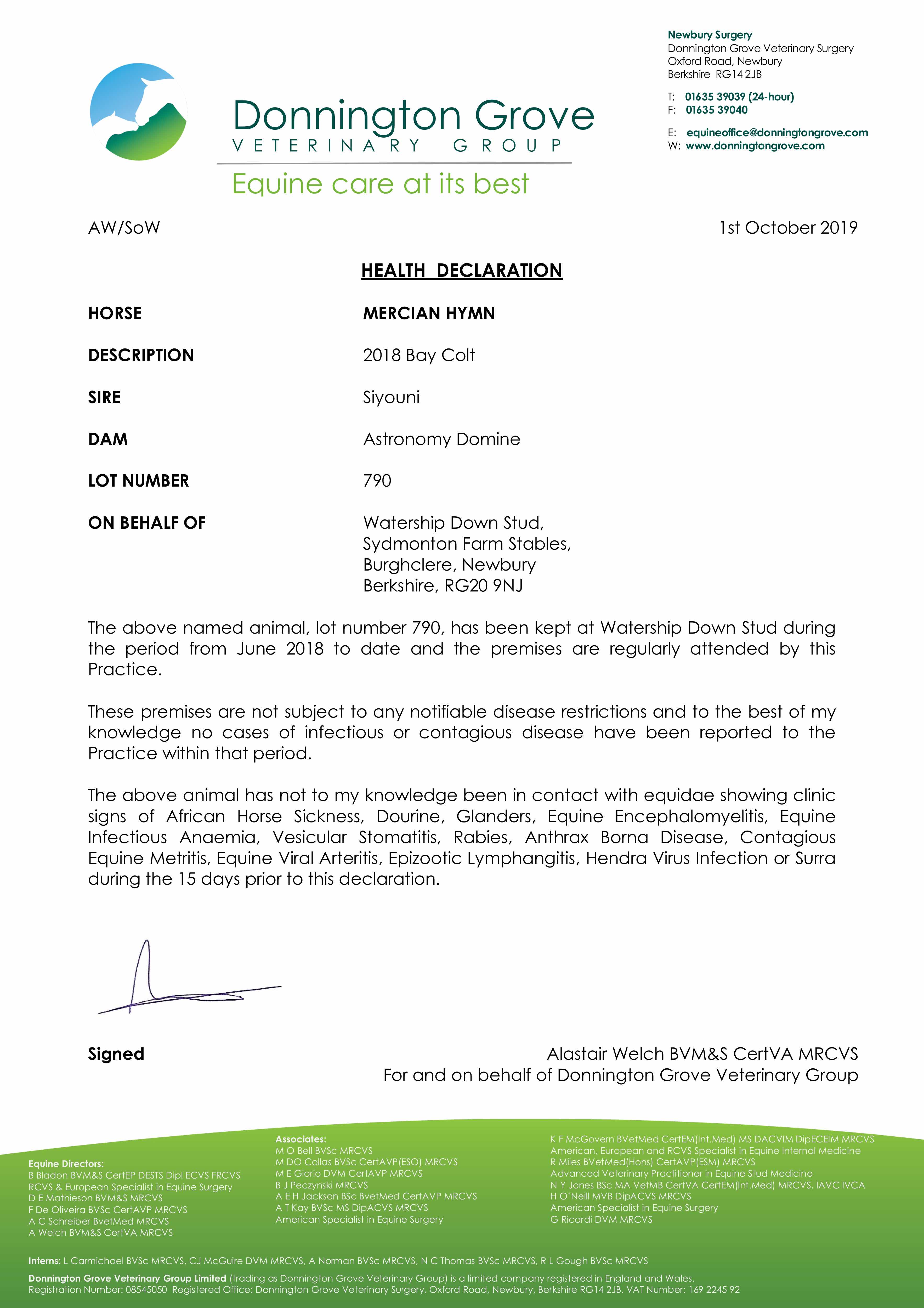 Consignor: Watership Down Stud