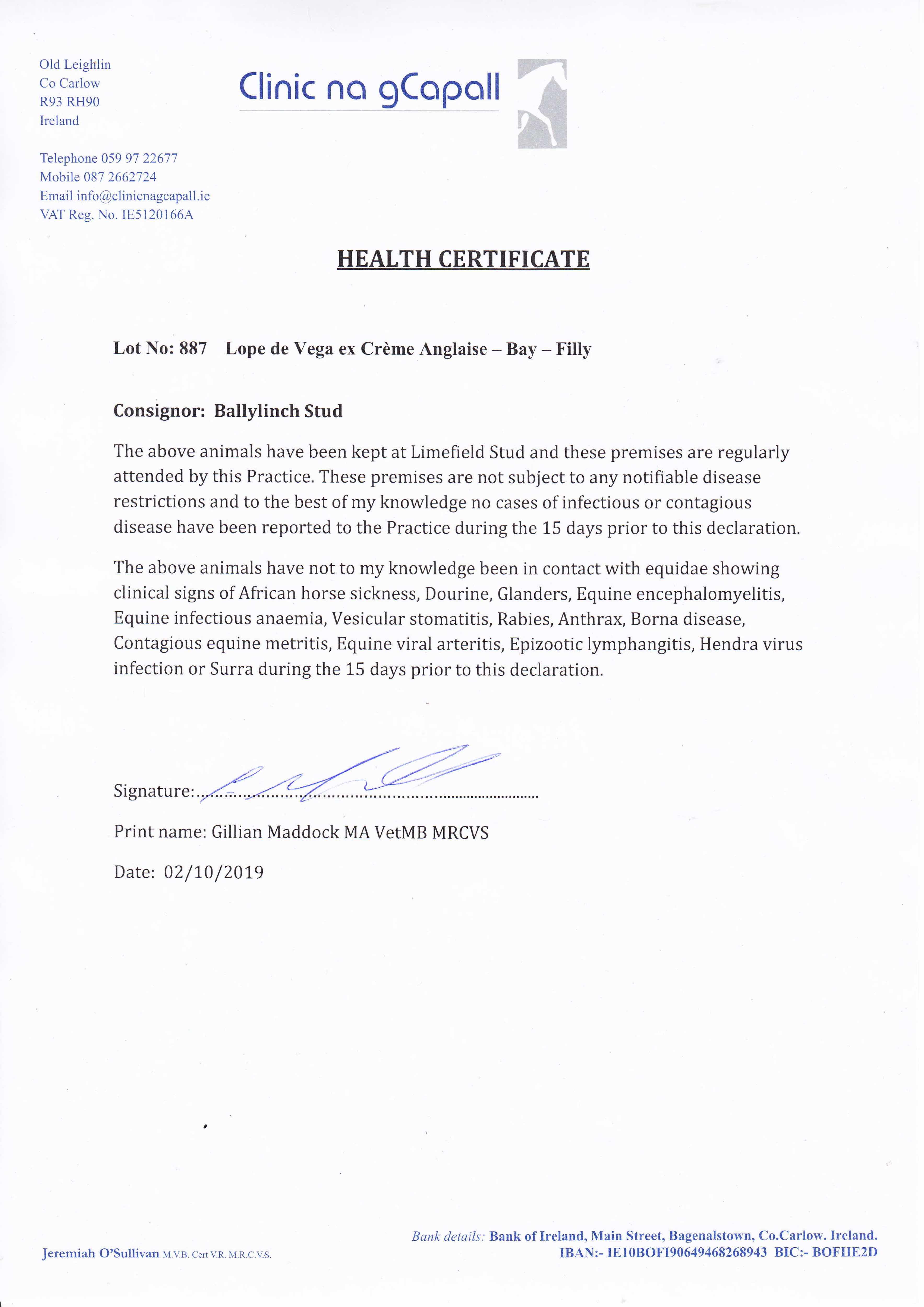 Consignor: Ballylinch Stud, Ireland