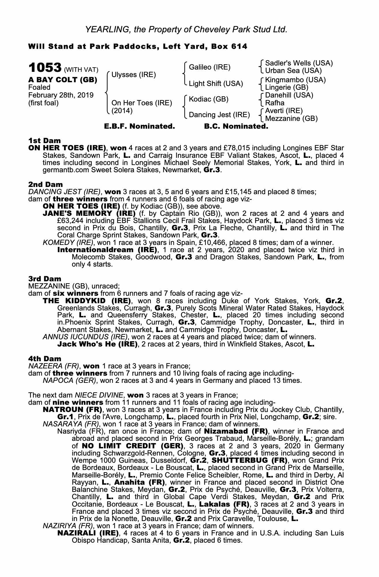 Consignor: Cheveley Park Stud Ltd.