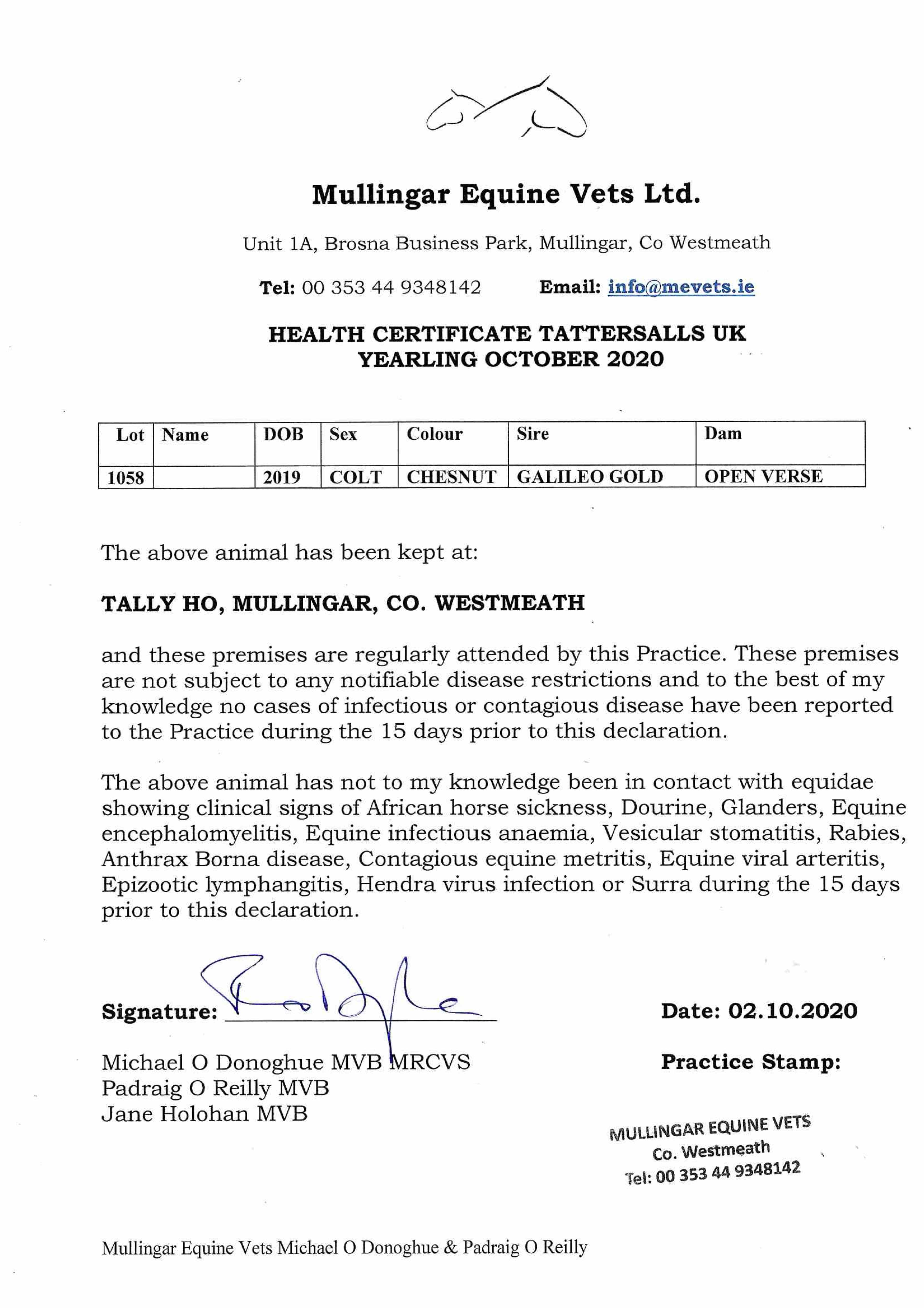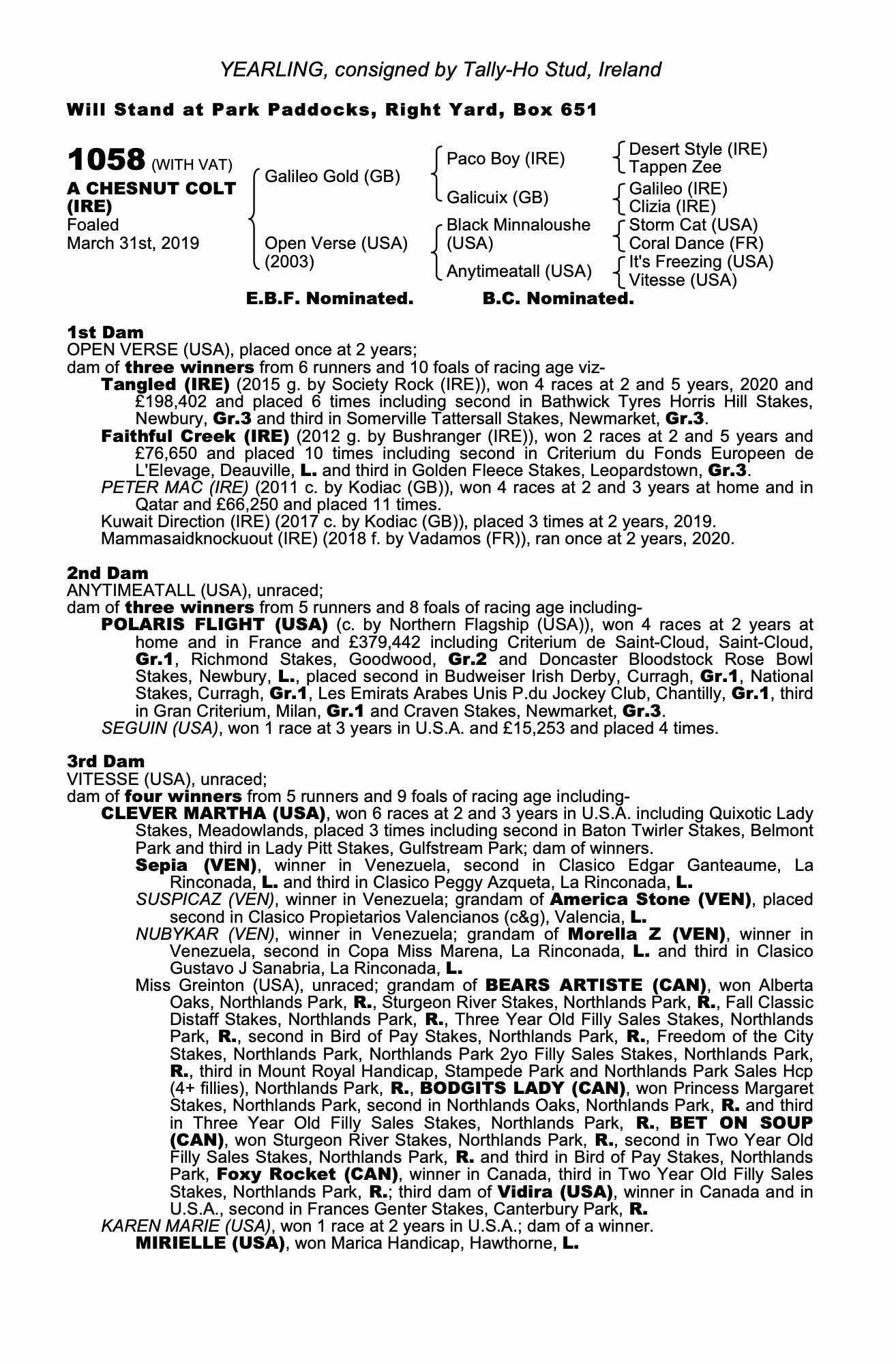 Consignor: Tally-Ho Stud, Ireland