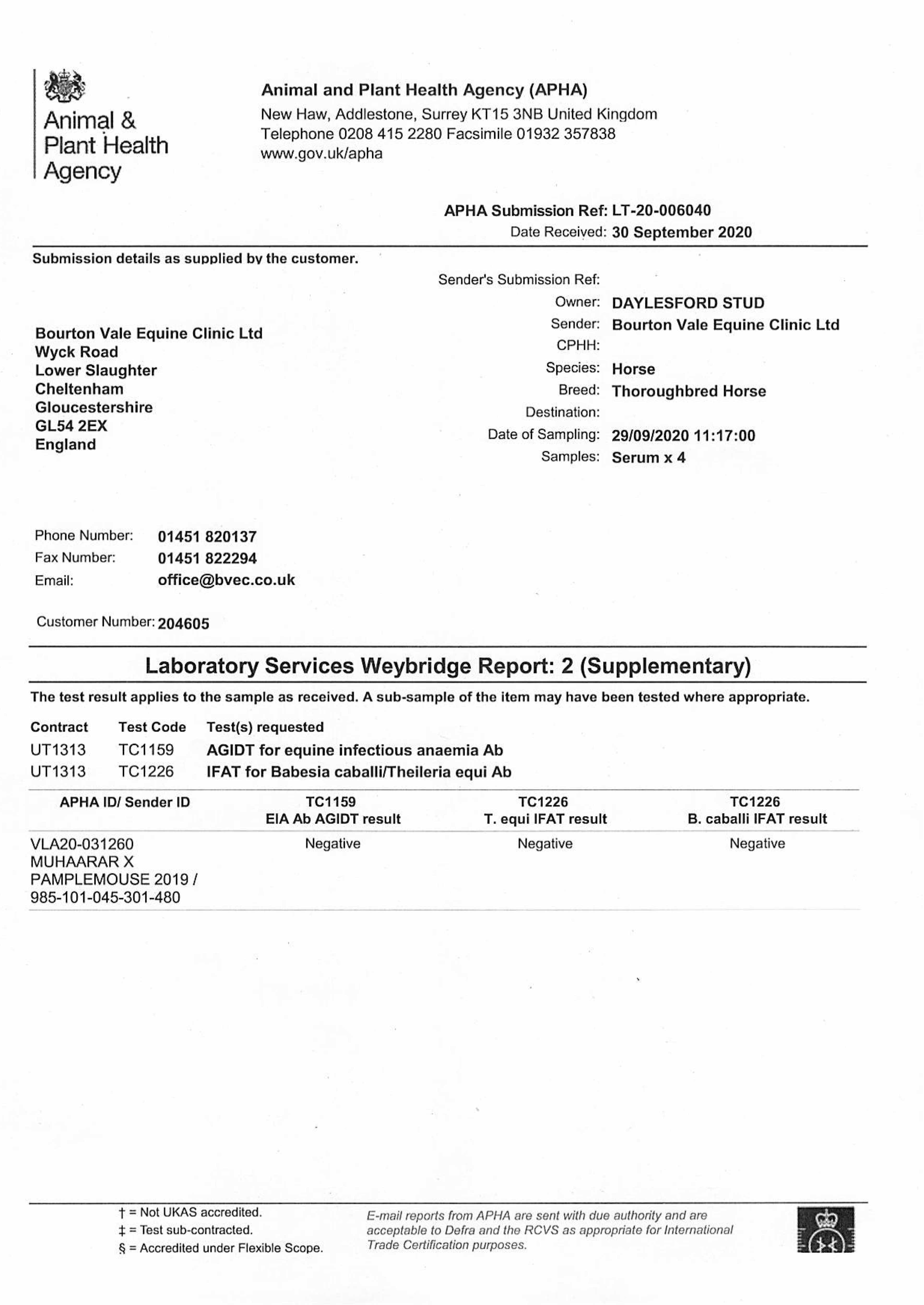 Piroplasmosis Certificate