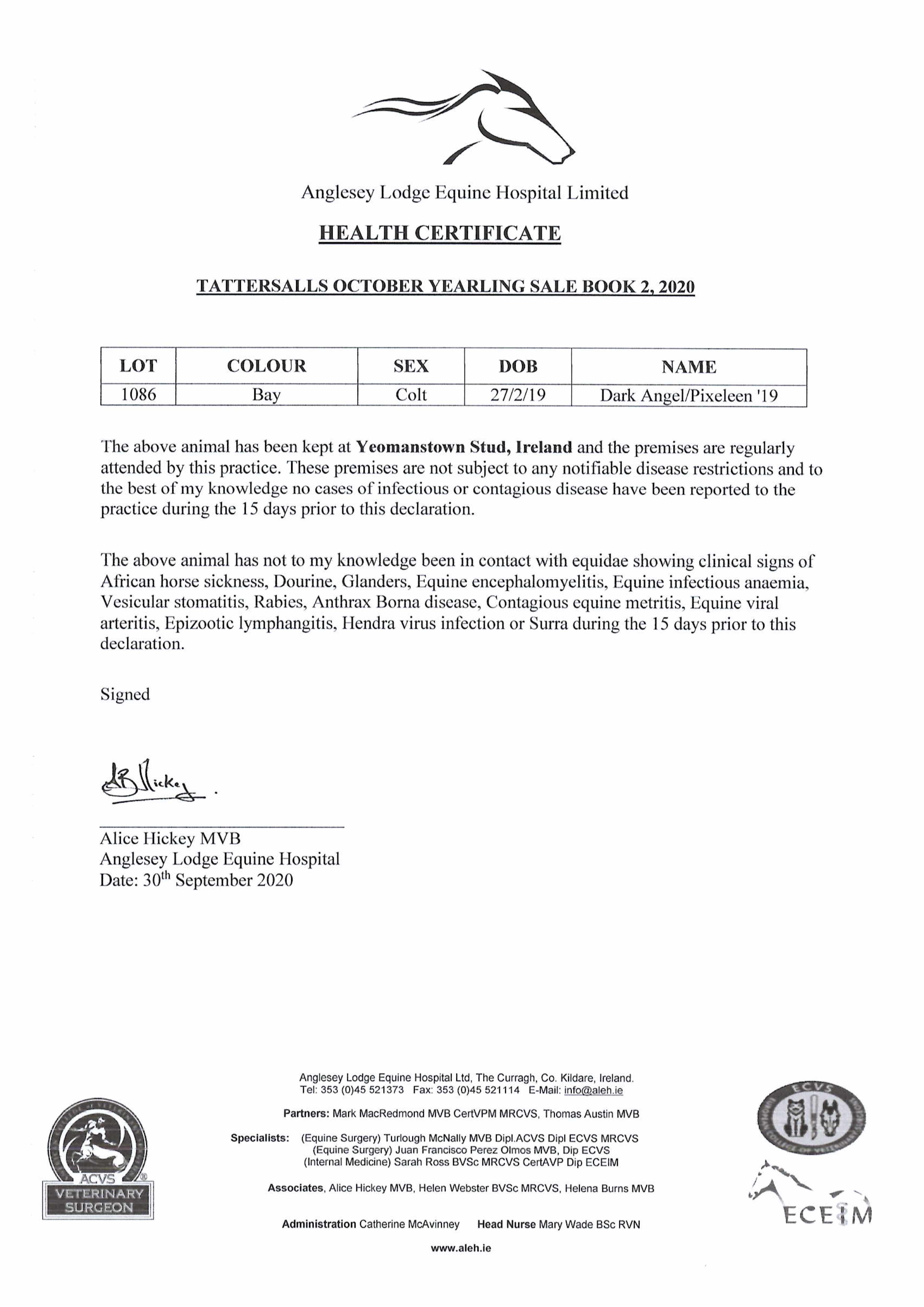 Consignor: Yeomanstown Stud, Ireland