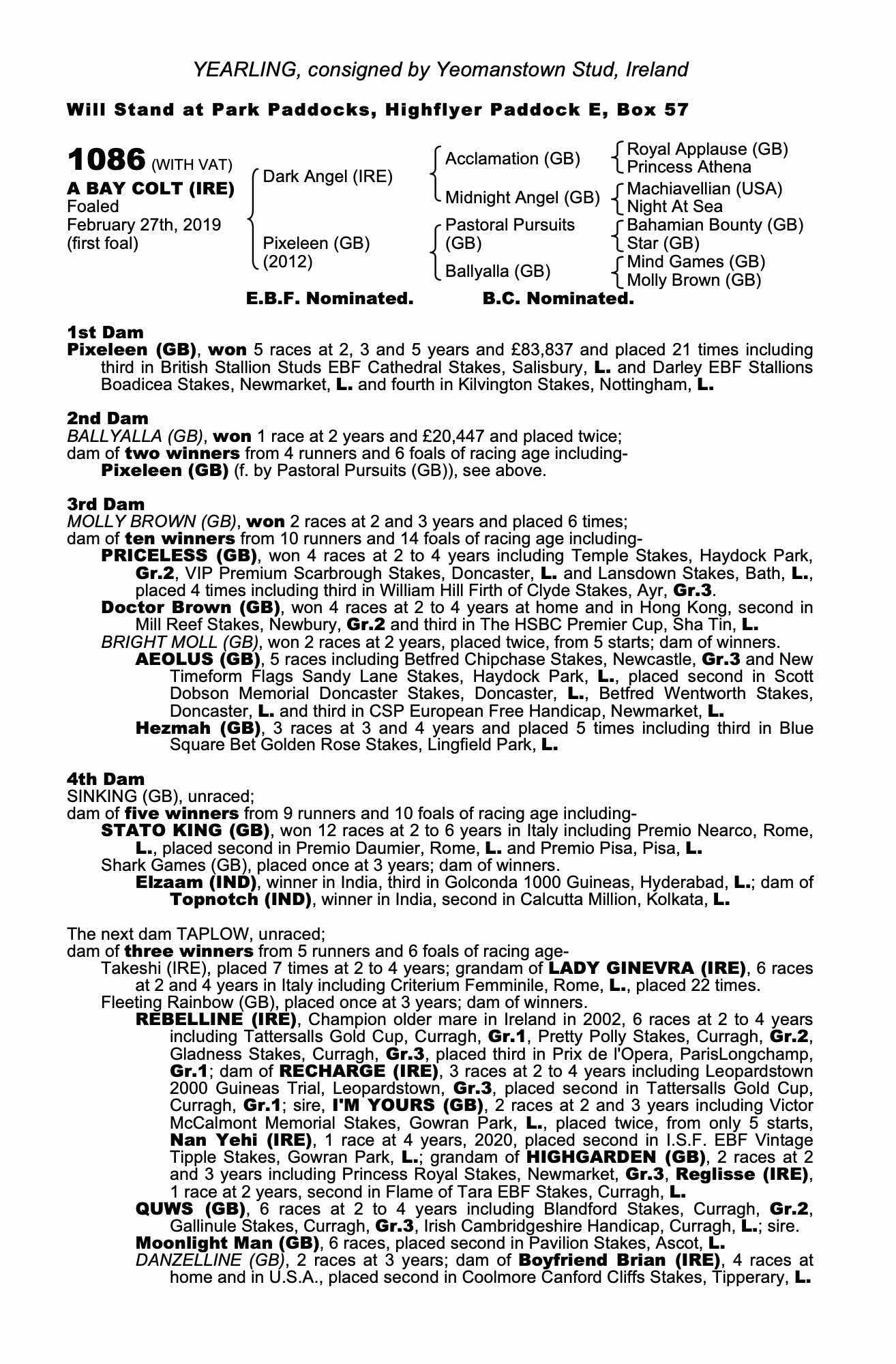 October Yearling Sale, Book 1 2021 lot 204 F. 2020, Yeomanstown Stud, Ireland=>Kevin Ryan 225,000 gns