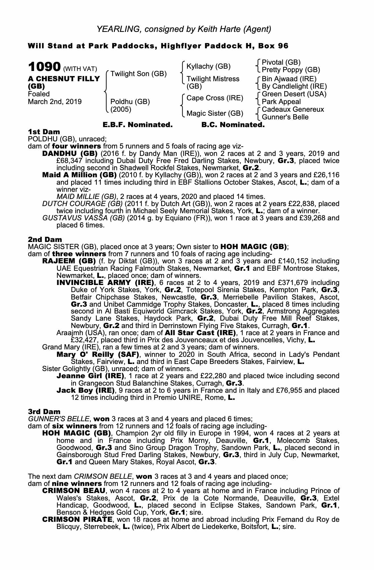 December Yearling Sale 2011 lot 81 F. by Kyllachy (GB) 2010, Keith Harte, Agent=>Mark Crossman 30,000 gns