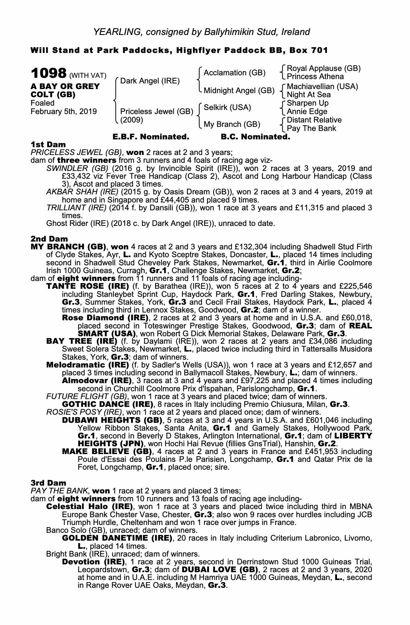 Consignor: Ballyhimikin Stud, Ireland