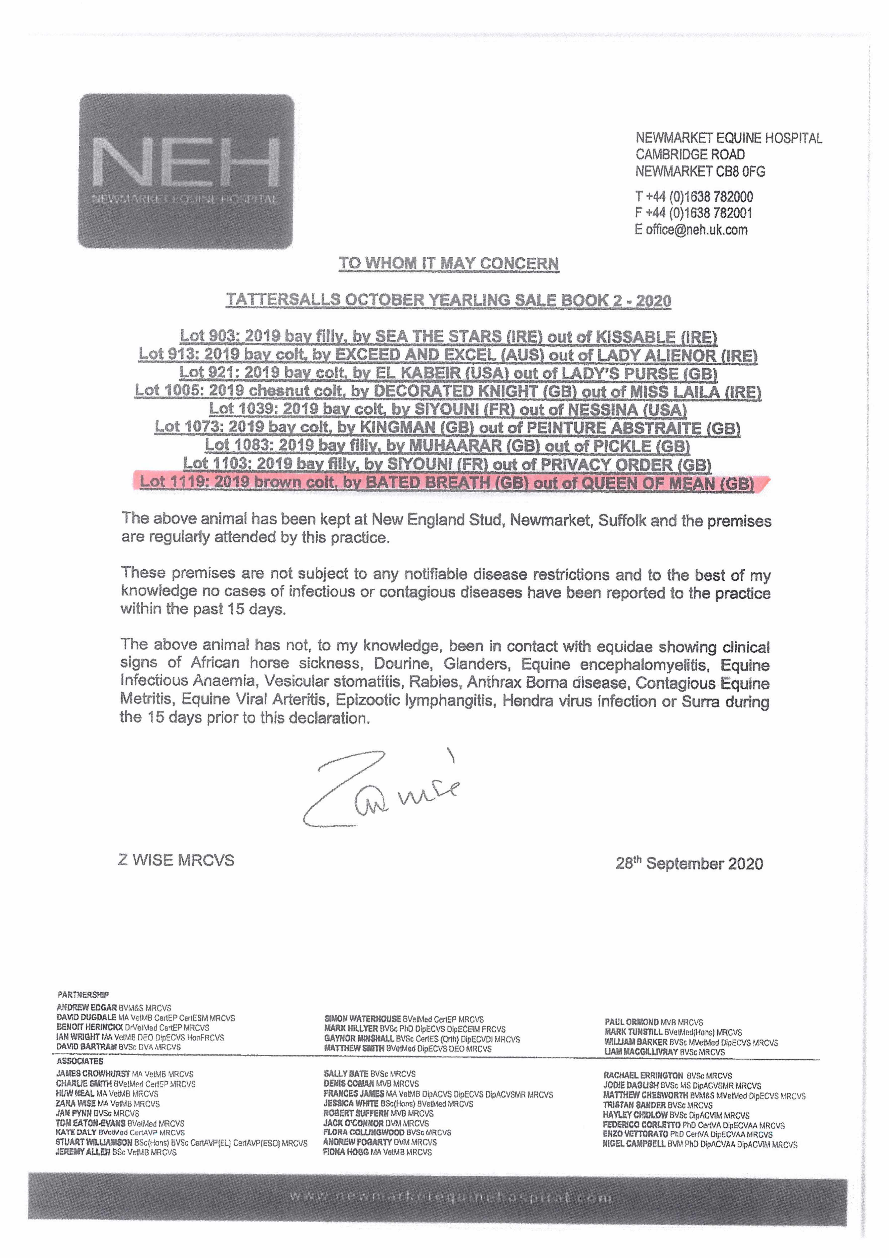 October Yearling Sale, Book 1 2013 lot 98 F. by Cape Cross (IRE) 2012, New England Stud=>Tony Nerses 260,000 gns
