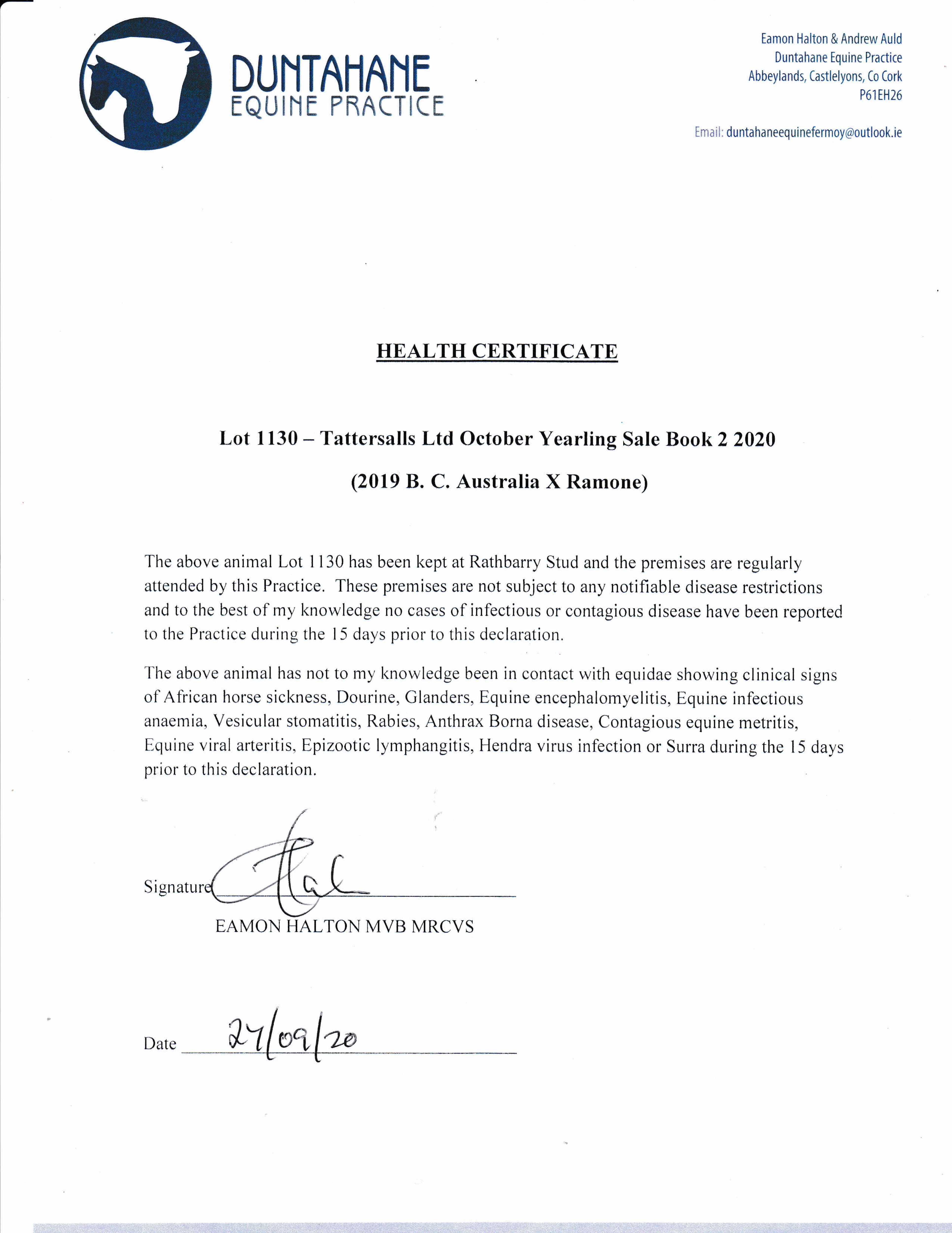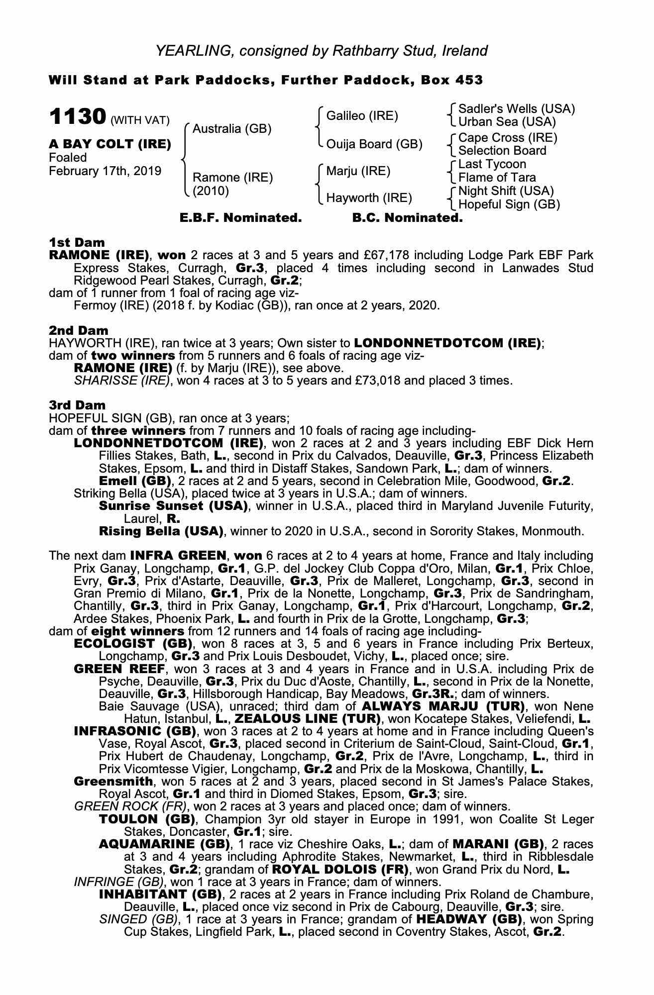 Consignor: Rathbarry Stud, Ireland