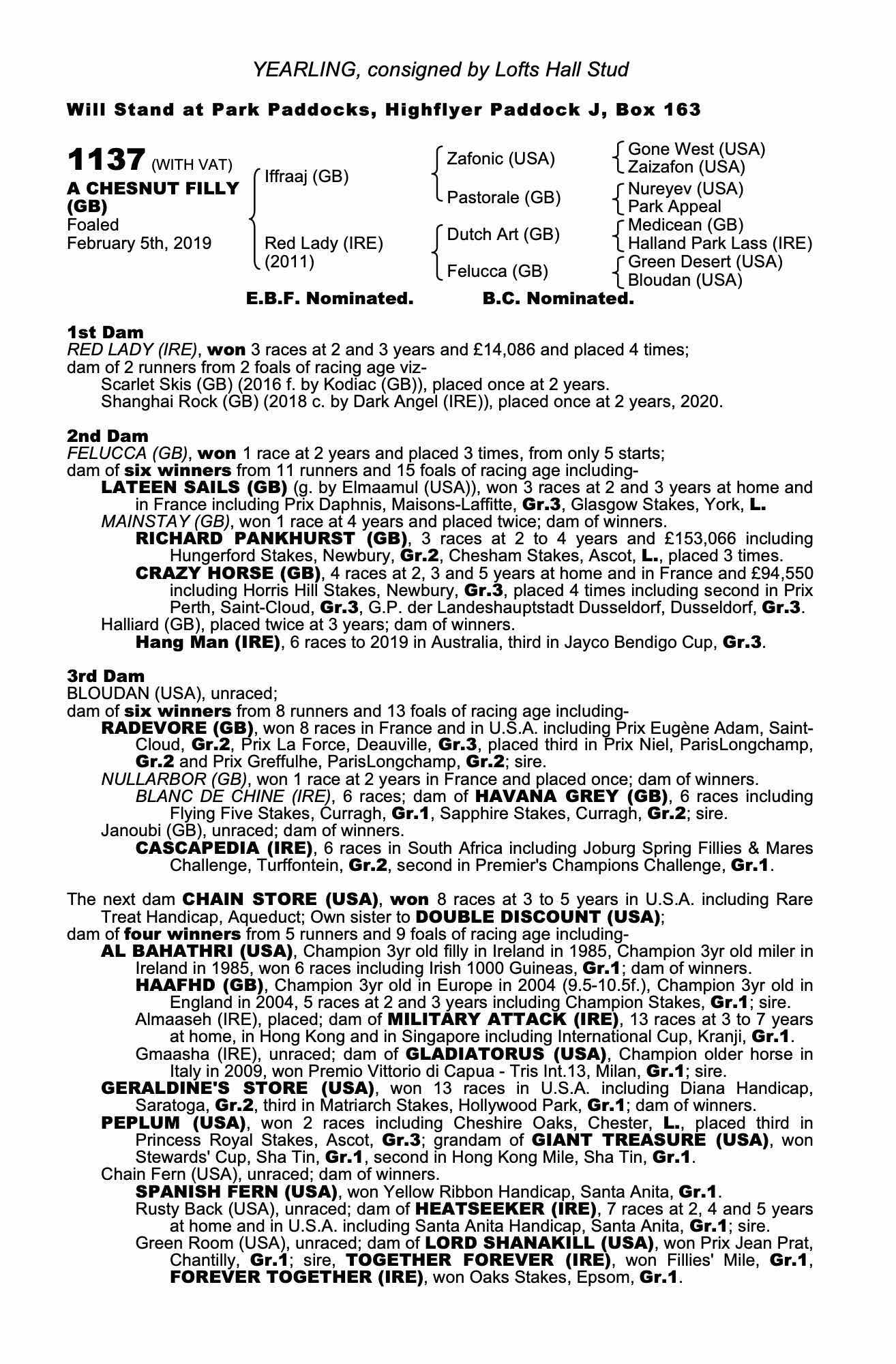Consignor: Lofts Hall Stud